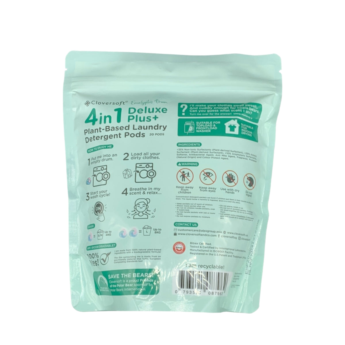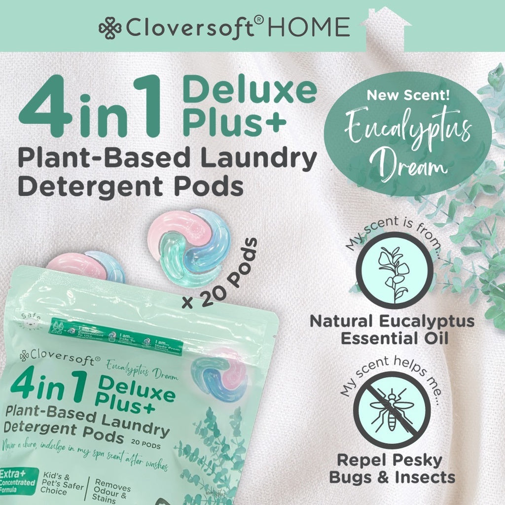 Cloversoft 4-in-1 Deluxe Plus+ Plant-Based Laundry Pods, 20 Pods - Eucalyptus Dream (Exp 06/26)