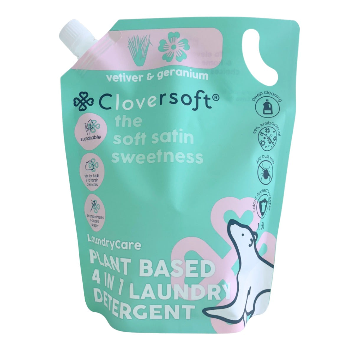 Cloversoft Plant-based 4-in-1 Laundry Detergent, 1.5L Refill Bag - Vetiver & Geranium (Exp 03/28)