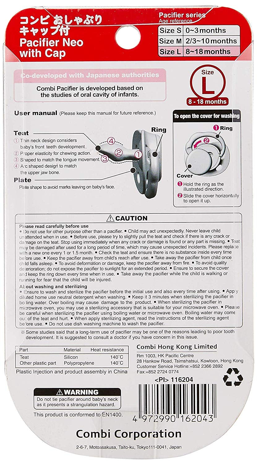 Combi Pacifier Neo with Cap is a hygienic pacifier specially designed for Asian babies. It lulls baby to sleep and stops baby from crying when baby requires suckling. This pacifier is developed based on the studies of oral cavity of infants.