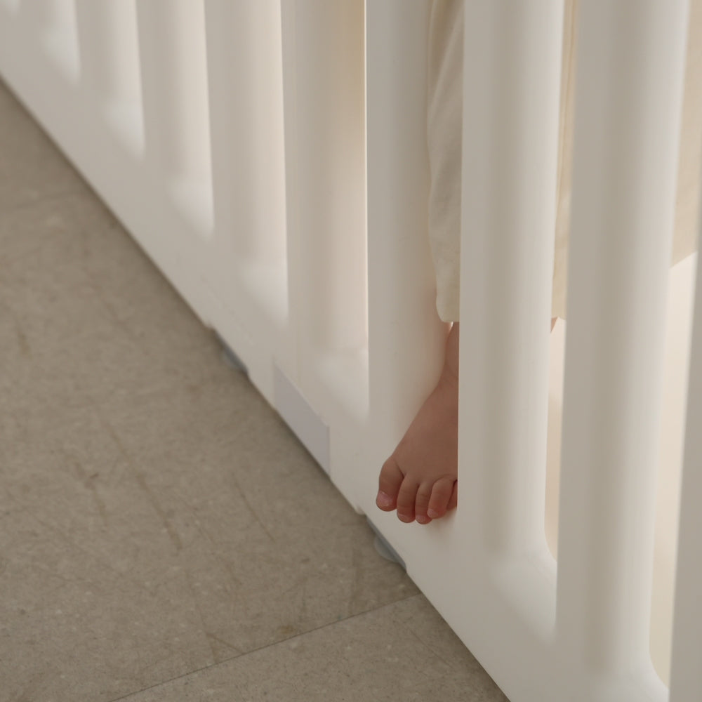 Creamhaus High Free Baby Room is a premium, Korean-designed play yard, offering a superior level of safety and stability for babies and toddlers. Its standout feature is the 70cm play yard height that safely contains and accommodate growing children. It is also designed with construction with extra-heavy 2.1kg panels and a dual-locking structure to ensure exceptional rigidity and prevent tipping, further secured by anti-slip silicone suction pads for increased floor grip. The vertical bars maintain a child-safe 5cm gap, a precise distance that eliminates the risk of entrapment while allowing children to peek out. Crafted from non-toxic materials and finished with smooth, rounded edges, this modern, minimalist fence creates a highly secure, stable, and stylish boundary where your child can safely stand, play, and grow.