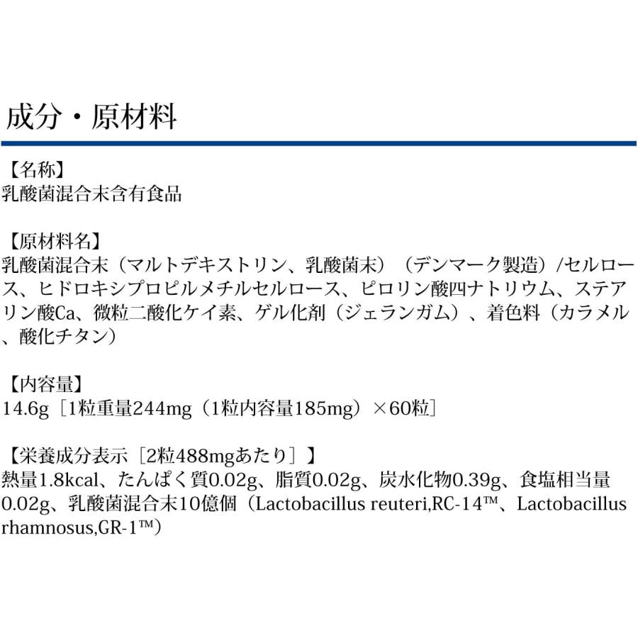 - It contains two specific strains of lactic acid bacteria: Lactobacillus reuteri (RC-14TM) and Lactobacillus rhamnosus (GR-1TM).