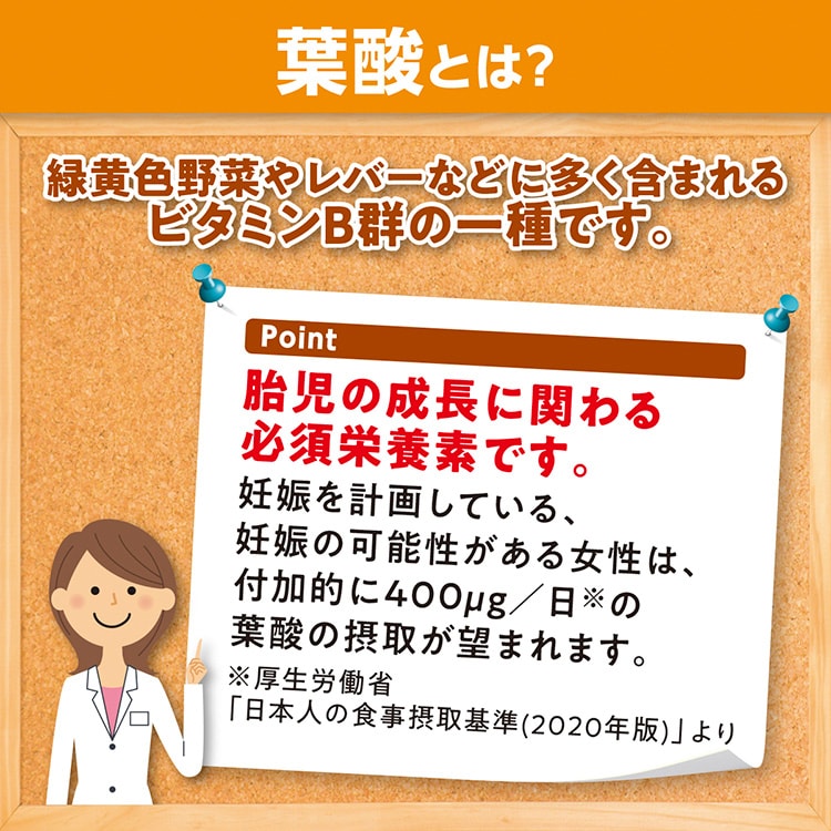 [Nutrition information] [Per 150mg tablet] Calories: 0.6kcal, Protein: 0.002g, Fat: 0.006g, Carbohydrates: 0.14g, Salt equivalent: 0.00002g, Folic acid: 400μg, Vitamin B2: 1.3mg, Vitamin B6: 1.7mg, Vitamin B12: 2.5μg