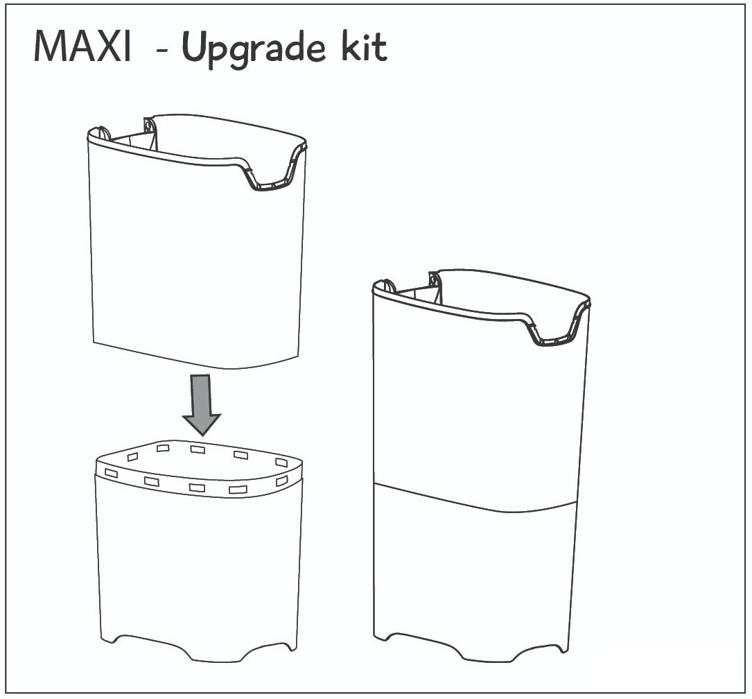 Diaper Champ Upgrade Set for ONE Maxi is an upgrade kit to upgrade your Diaper Champ ONE Standard Diaper Bin to a Diaper Champ ONE Maxi Diaper Bin. The Diaper Champ ONE Diaper Bin holds up to 40 diapers whereas the Maxi holds up to 85. If your little one is churning out more diapers than your Diaper Champ ONE can manage, this upgrade set is what you need. This kit consists of a body component to assemble on to your existing ONE Standard Diaper Bin.