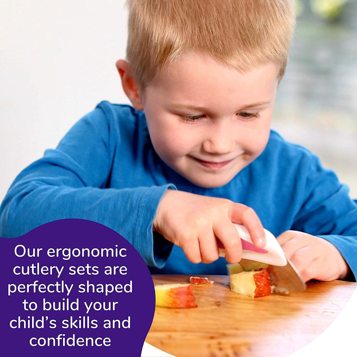 - Expertly placed and colorful soft touch areas encourage your child to intuitively open up their fingers and ‘pinch’ the cutlery helping them progress from the basic palmar grip to the more advanced ‘pincer grip’ (which a core motor skill they’ll need to hold a pencil, use scissors and, in time, use adult cutlery