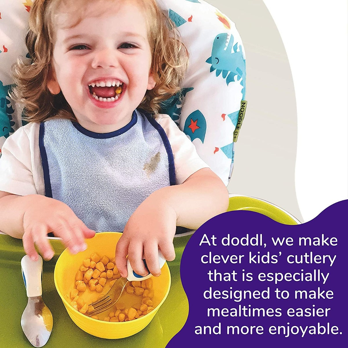 - The Doddl fork can be easily rotated within the palm for both stabbing and scooping, offering your child options on how best to tackle their food