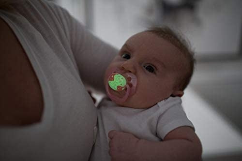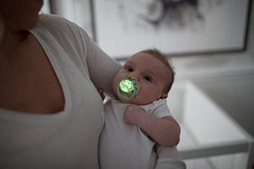 - Glow in dark pacifier to easily find day or night and recharged by the next day’s light