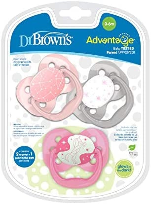 Dr. Brown's Advantage Baby Pacifiers - Stage 1 (0-6m) (3pc) - Pink