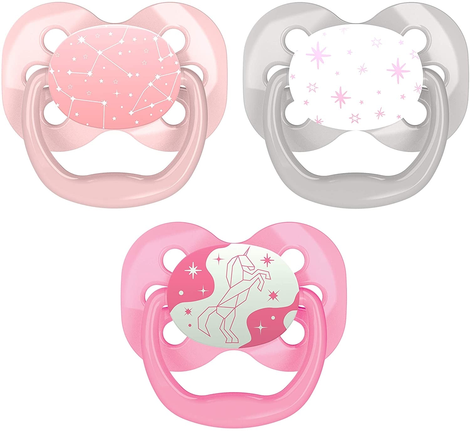 - Contains 3x pacifiers including 1 Glow in the Dark