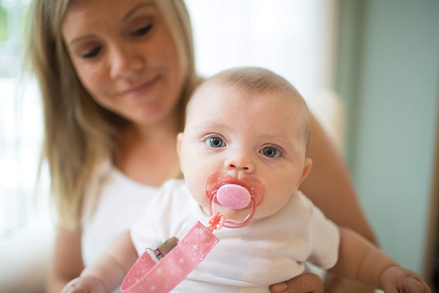 - Closed-loop design that safely secures to baby's pacifier