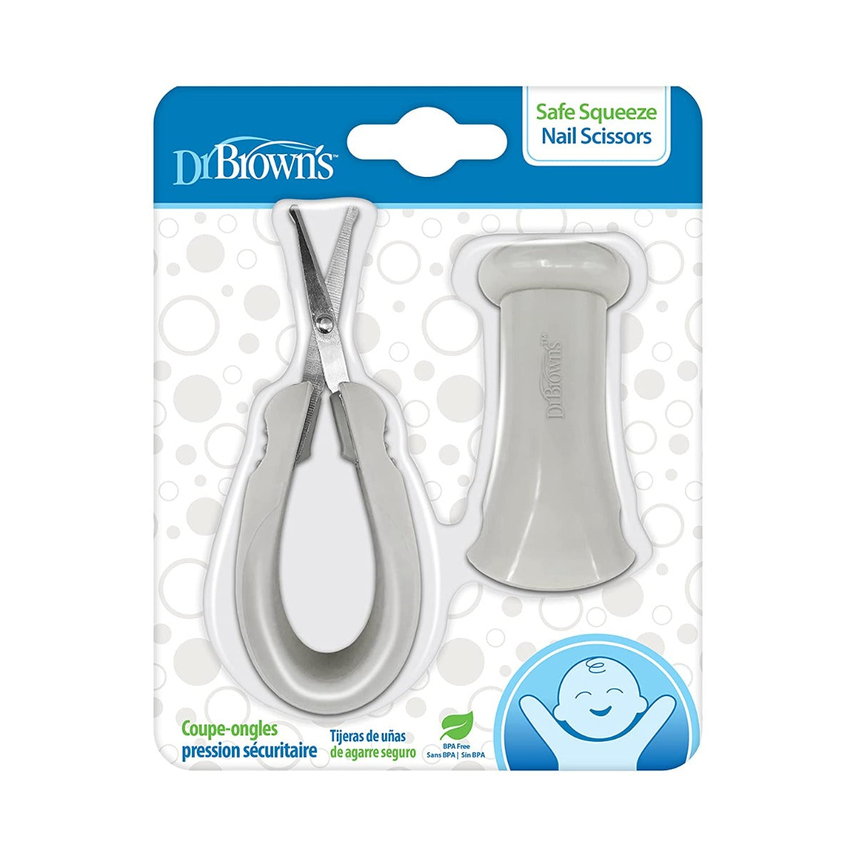 Dr Brown's Safe Squeeze Nail Scissors is a worry-free baby nail scissor, that is uniquely designed baby nail scissors are compatible with both left and right-handed users. The 100% silicone handle features finger grippers for an extra layer of control. The included protective case allows for convenient and easy upright countertop storage. Nail grooming time with Dr. Brown’s™ Safe Squeeze Nail Scissors. Safe, rounded blades take the worry out of trimming tiny nails.