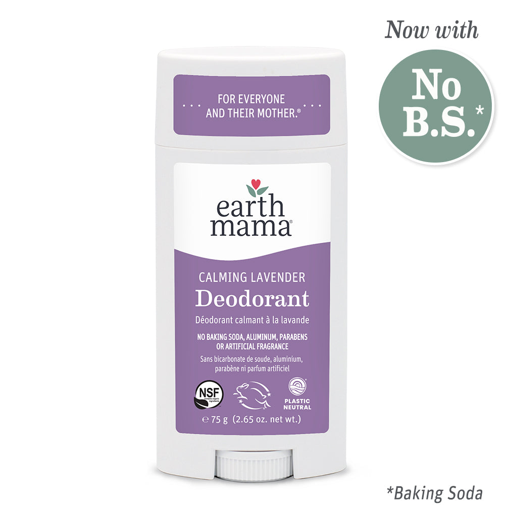 Earth Mama deodorants contain organic ingredients that were thoughtfully formulated by a nurse/herbalist (who also happens to be a mother). We recently removed baking soda from the ingredient list since we know it can be an irritant for some individuals.