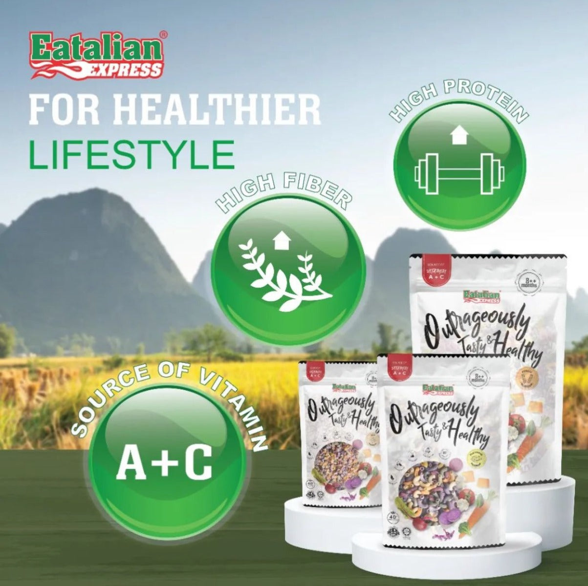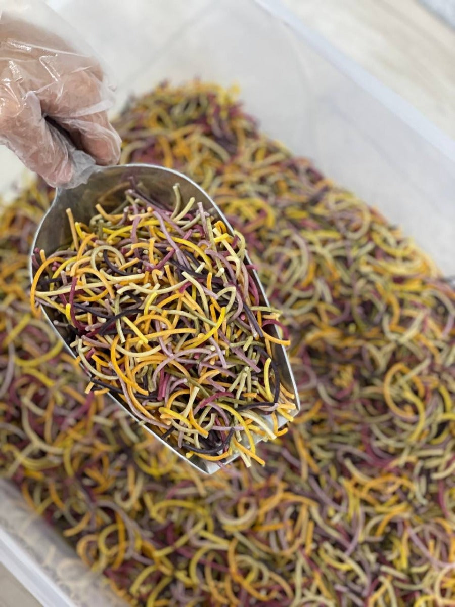 Eatalian Express Mini Spaghetti is made from a combination of 10 different types of fresh vegetables, durum wheat semolina flour and water. The vegetables used are - spinach, carrot, pumpkin, broccoli, beetroot, sweet potato, tomato, red spinach, purple carrot and cauliflower.
