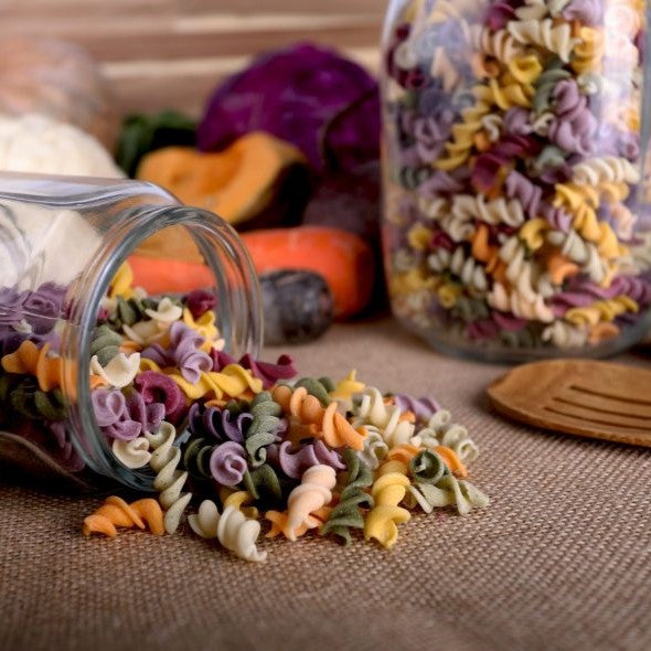 Tomato, Cauliflower, Pumpkin, Carrot, Broccoli, Spinach, Beeroot, Purple Sweet Potato, Red Cabbage, Purple Carrot and Durum Wheat Semolina