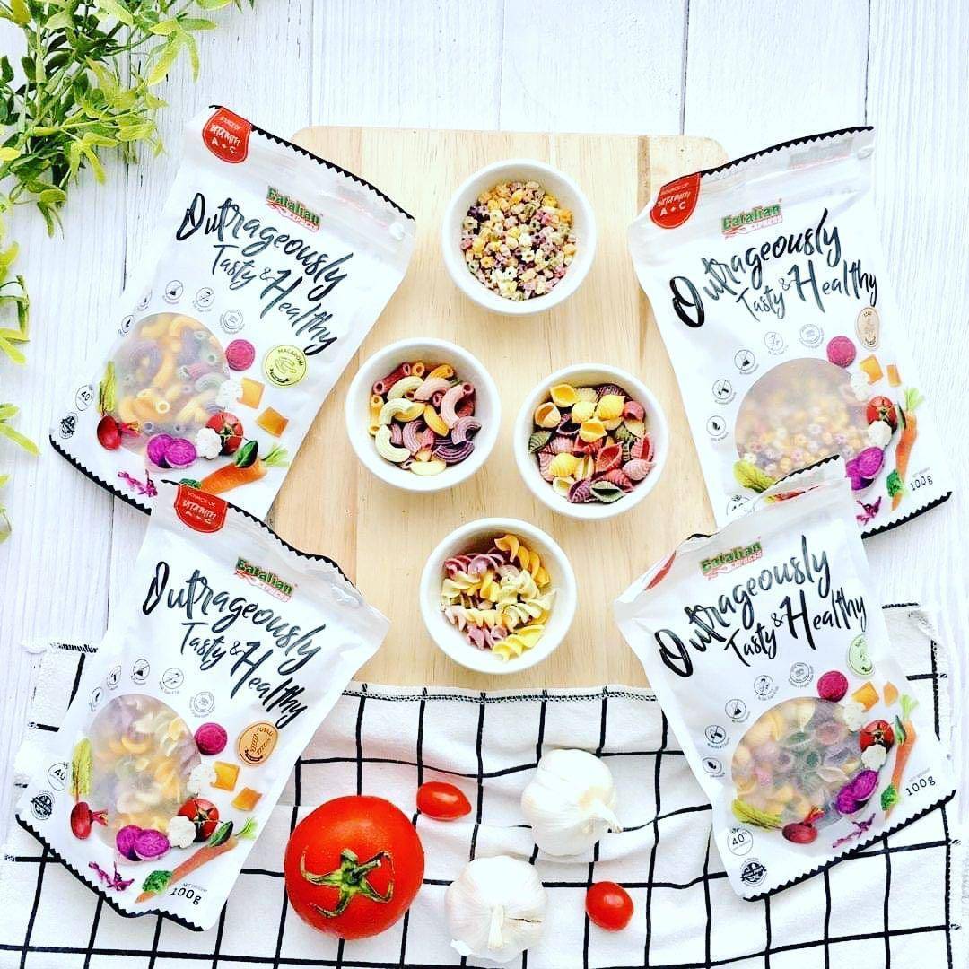 Eatalian Express Macaroni Pasta is made from a combination of 10 different types of fresh vegetables, durum wheat semolina flour and water. The vegetables used are - spinach, carrot, pumpkin, broccoli, beetroot, sweet potato, tomato, red spinach, purple carrot and cauliflower.