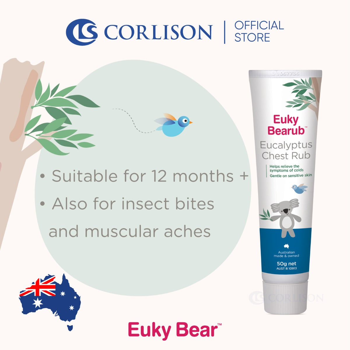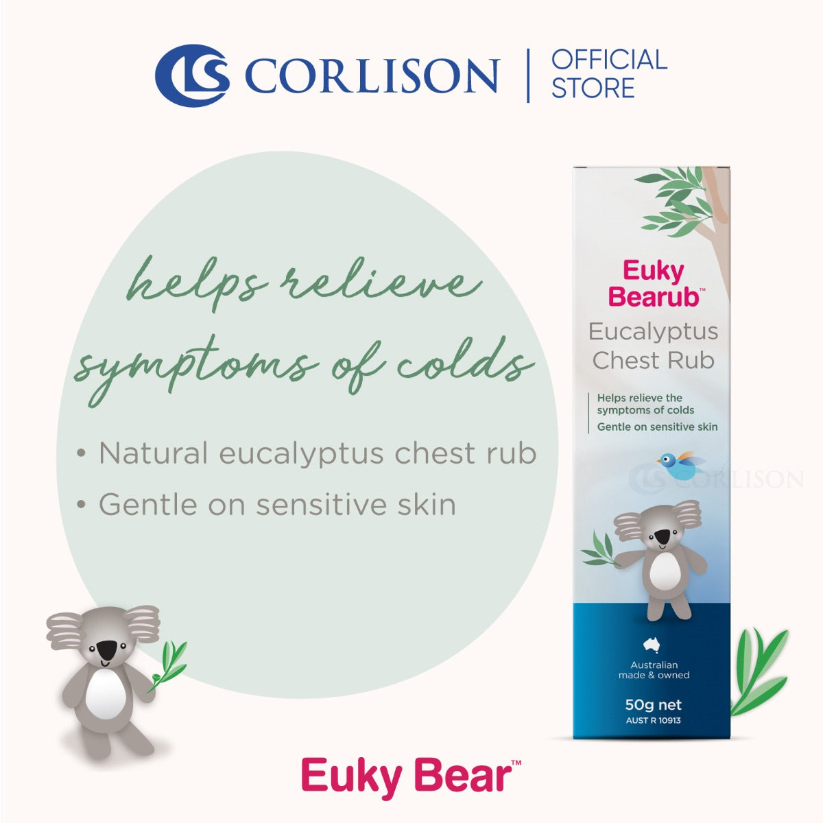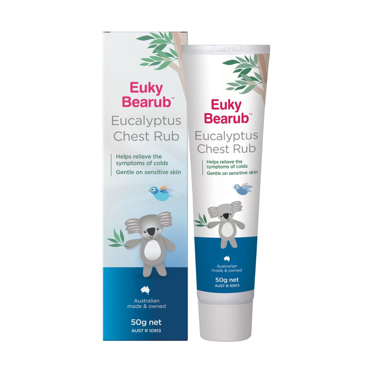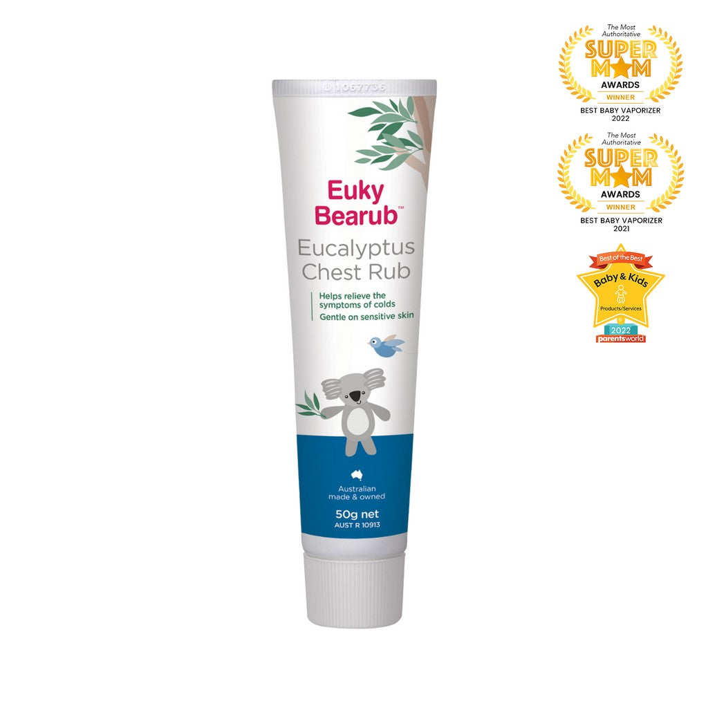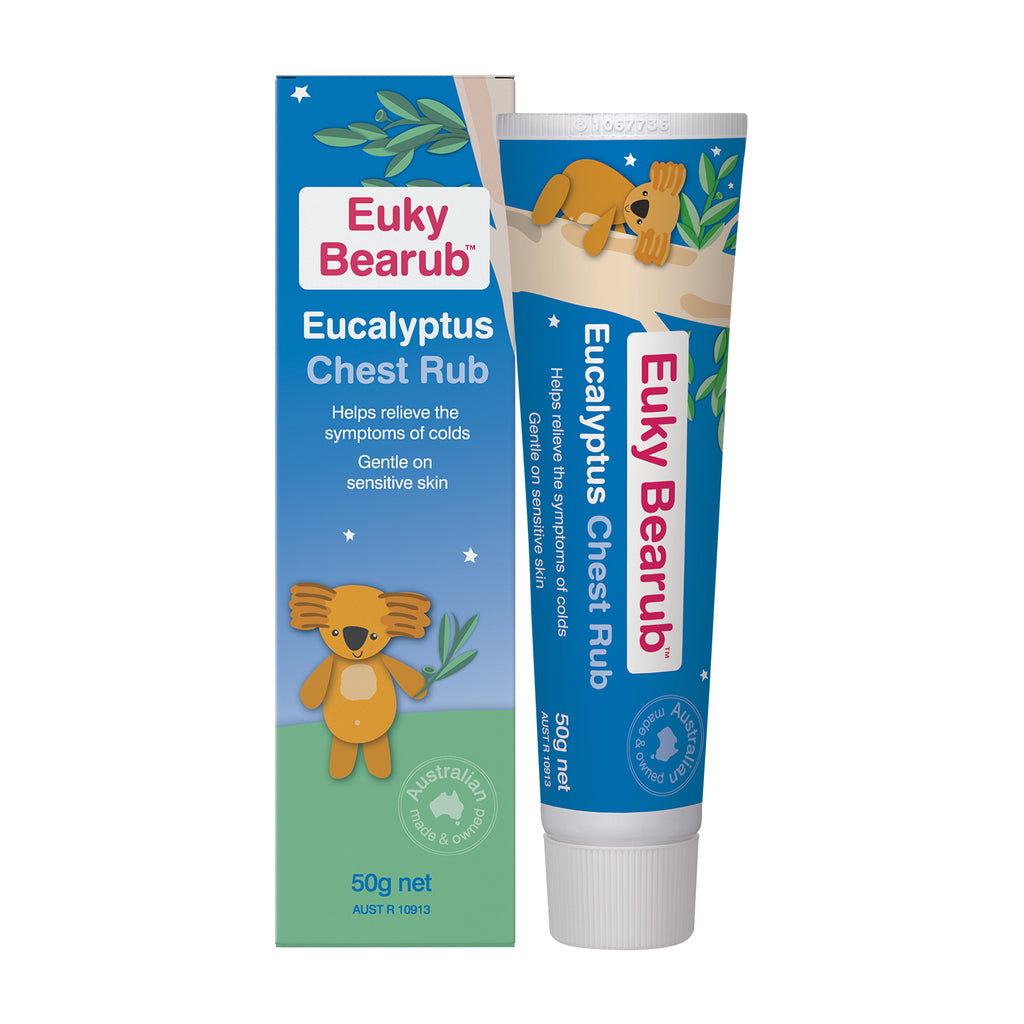 Euky Bearub Eucalyptus Chest Rub is a gentle, soothing Australian Eucalyptus chest rub that helps relieve a stuffy nose, irritating cough associated with colds and general aches and pains. Used before sleep, it helps make breathing easier. Although adult strength, it is gentle on sensitive skin.