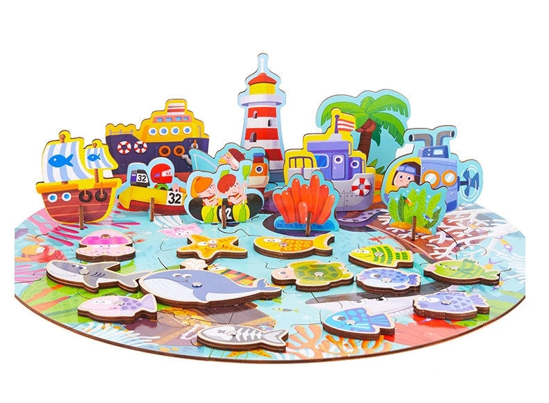 - Comes with lighthouse, ship, submarine, boat paddlers, sea creatures and fish pieces and more to decorate the ocean using your own creativity