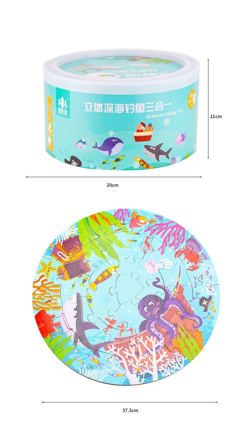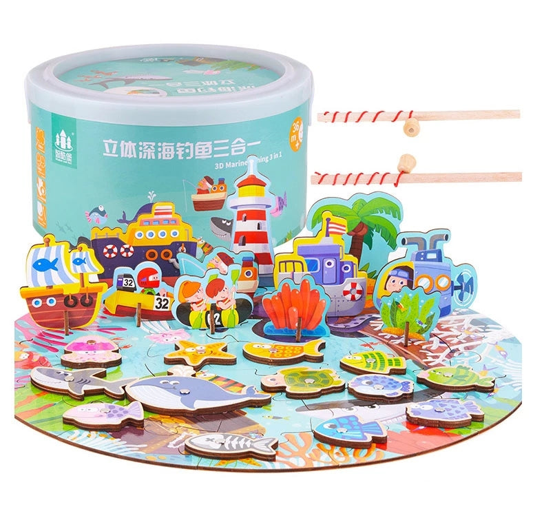 - Includes a puzzle piece board that doubles as an ocean game board for fishing