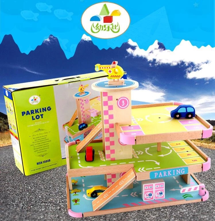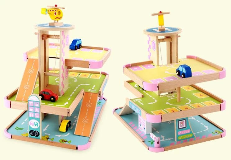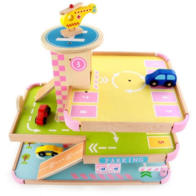 FunKids Three Storey Wooden Parking Lot is a colourful wooden garage featuring 3 storeys, ramps, toy cars and even a helipad with a helicopter. This is a great addition to your child's vehicle car collection. No toy vehicle set is complete with a garage! Scenario and role play toy encourages creative imagination, social and language development. Can be played interactively, this develops turn taking skills as well social interaction.