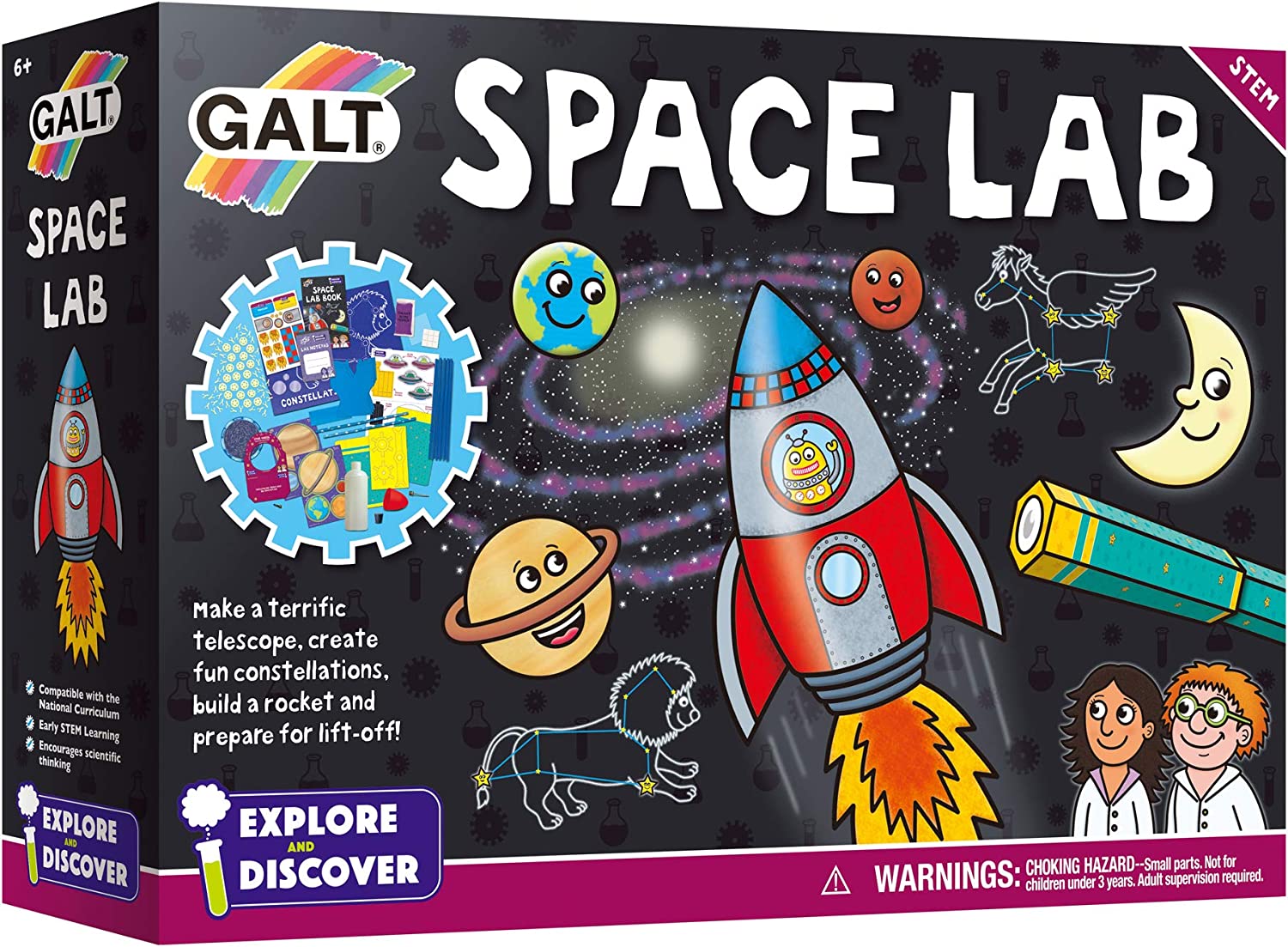 Galt Toys Space Lab is an exicting STEM toy where kids cam make glow-in-the-dark constellation models and build a telescope and launch their own rocket. Experiment with shadows, mix up galaxy slime and create a solar system in your room! Winner of the 2019 Progressive Preschool Award for Best Preschool STEM Range. Includes 12 fun experiments to encourage early stem learning and scientific thinking.