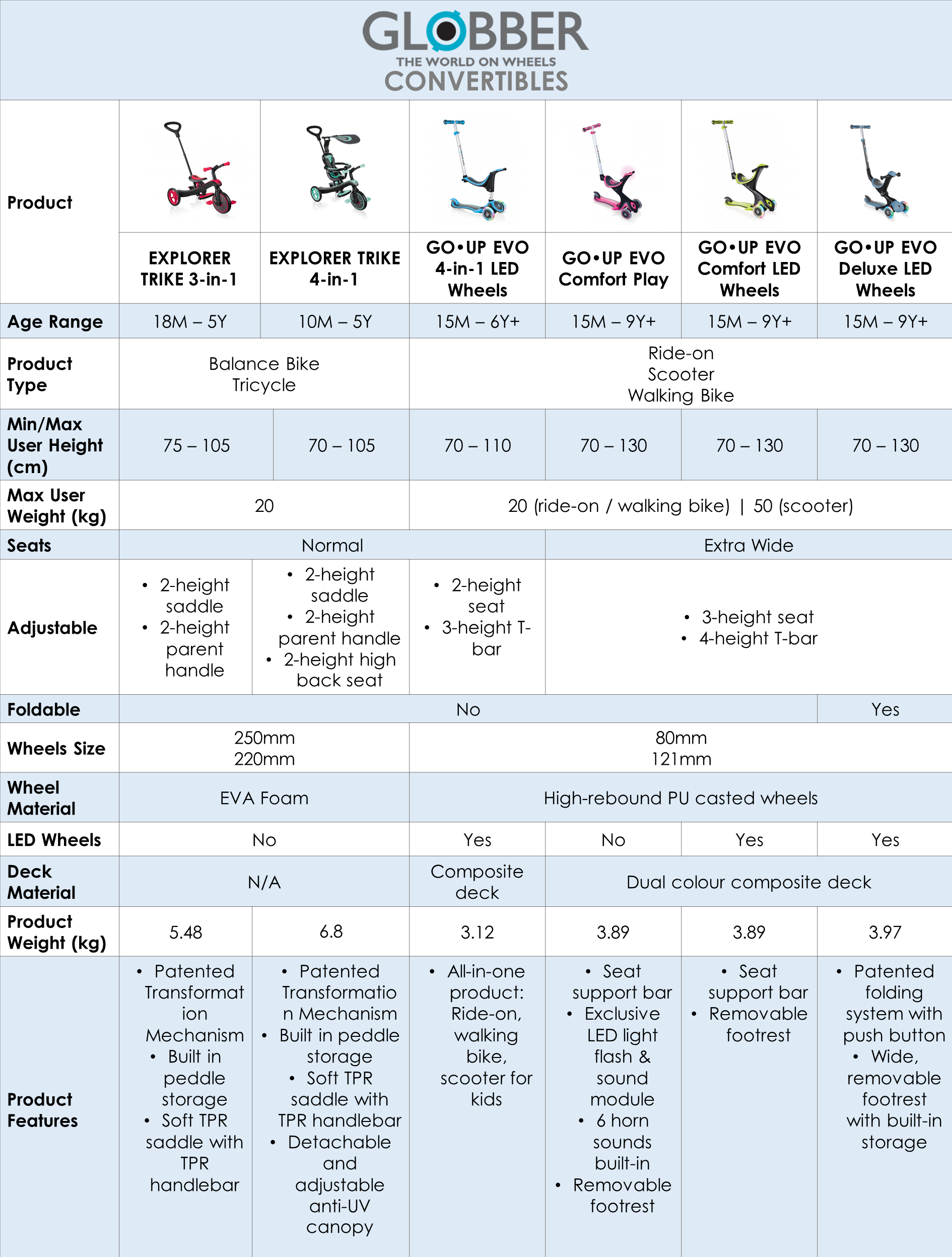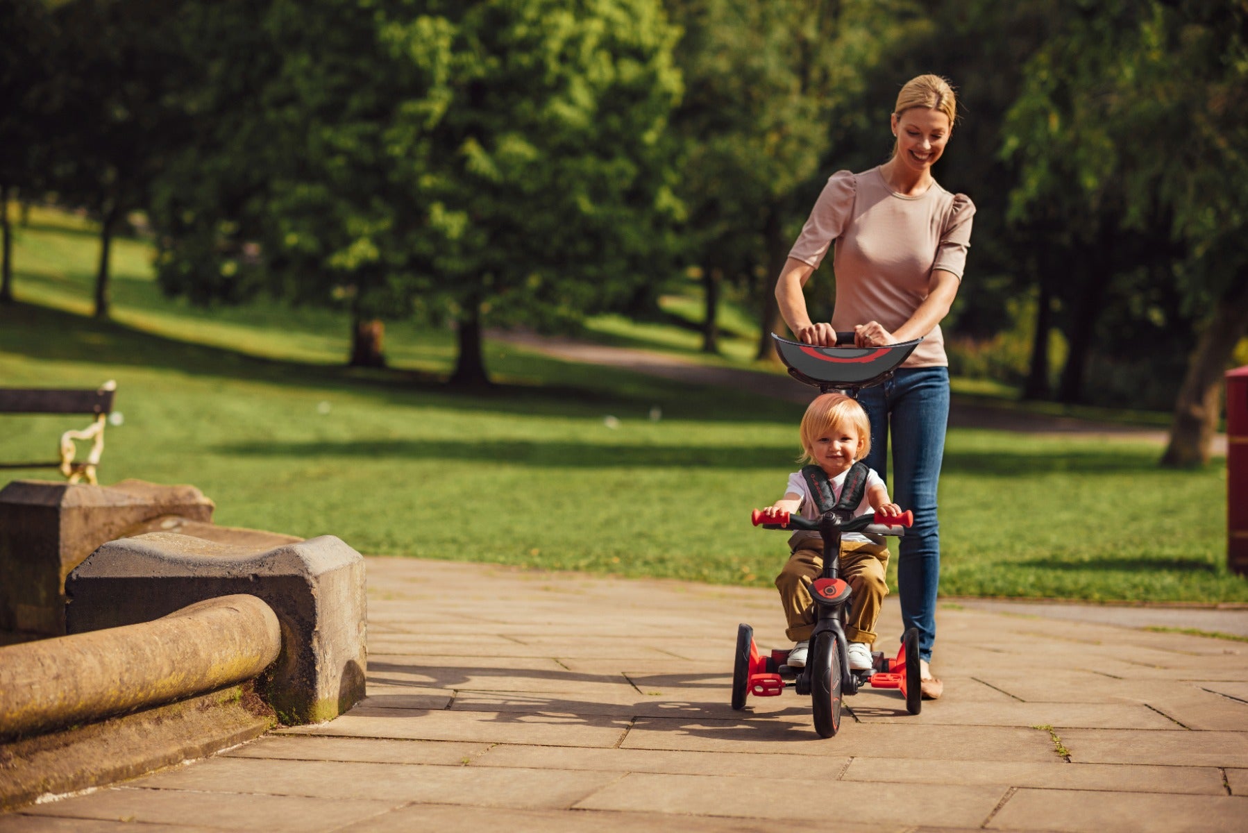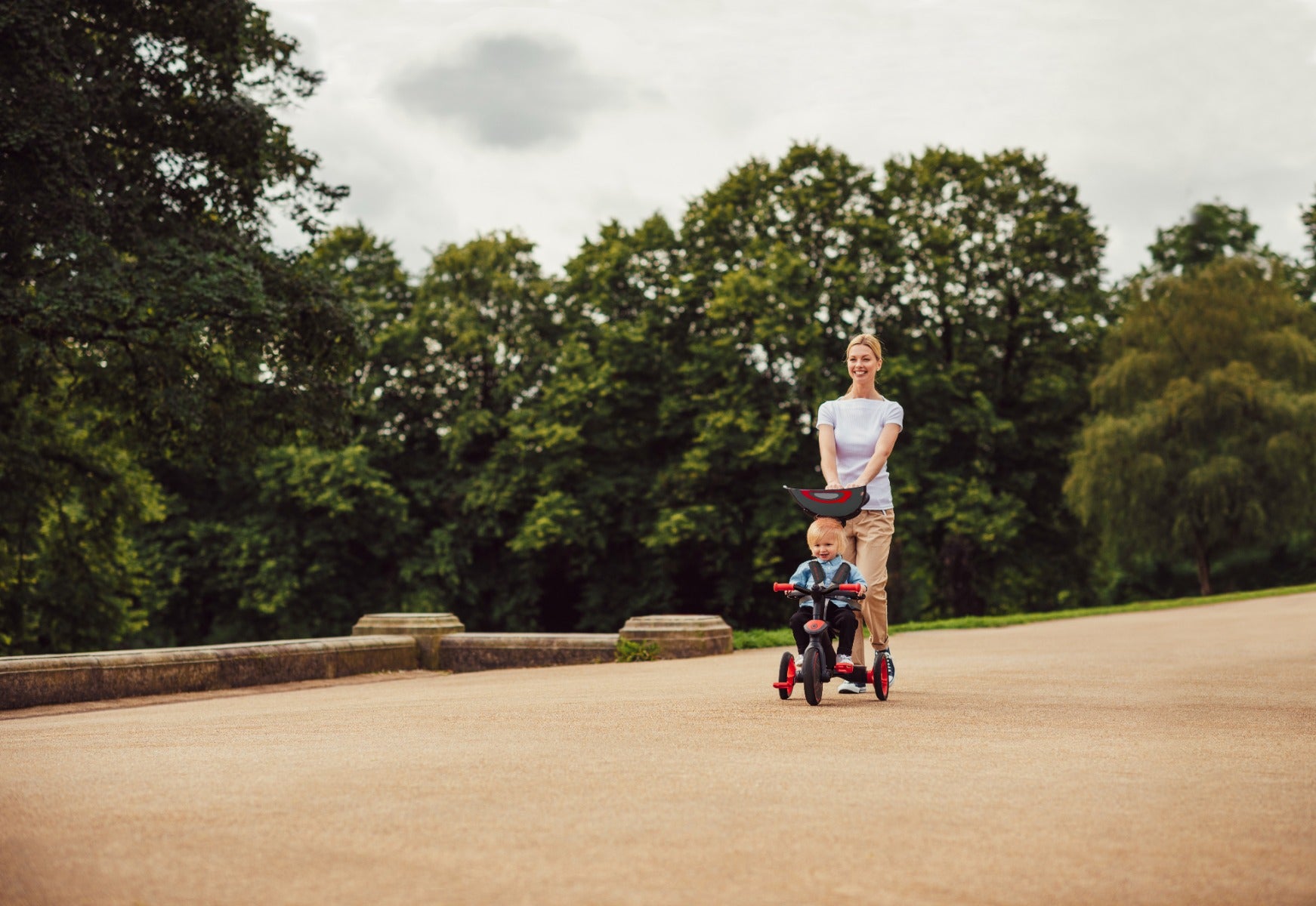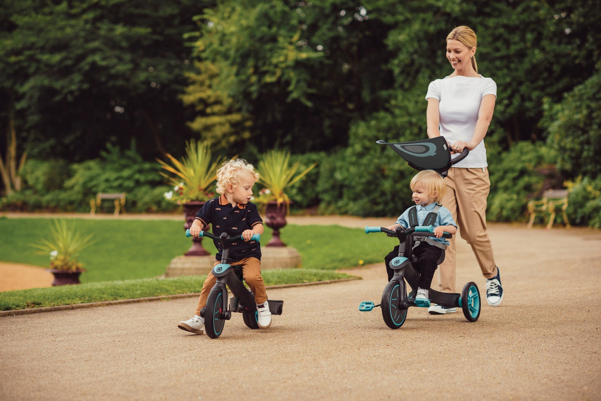 Globber Explorer Trike 4 in 1 is an all-in-one kidsβ tricycle and balance bike. A baby/toddler tricycle with a push handle, which conveniently offers 4 different stages - Infant Trike (10-36m), Guided Trike (18-36m), Training Trike (24-36m) and Balance Bike (2-5Y), to not only conveniently transform alongside your child's development but to also provide even more functionality than the norm with a balance bike mode included, for maximum product usage! What's more, our trike is a 100% tool-less design, so it's super easy to transform into all 4 stages!Β