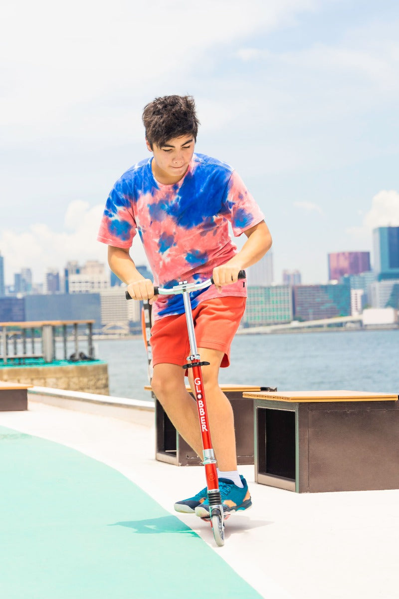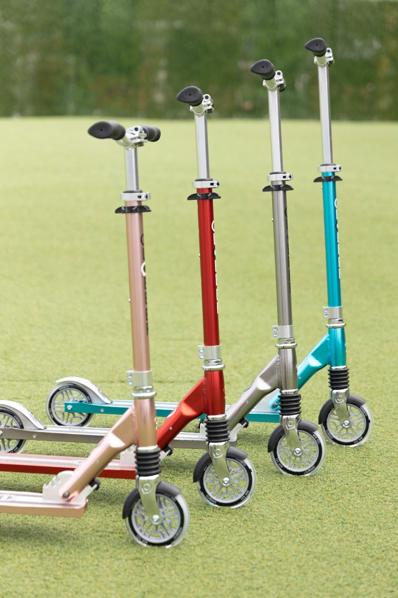 - New, sleek Globber design with full anodized chrome finish on an all-aluminium frame.