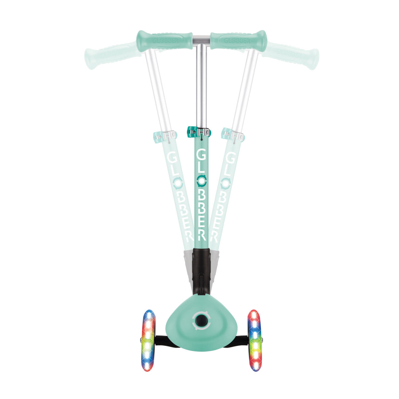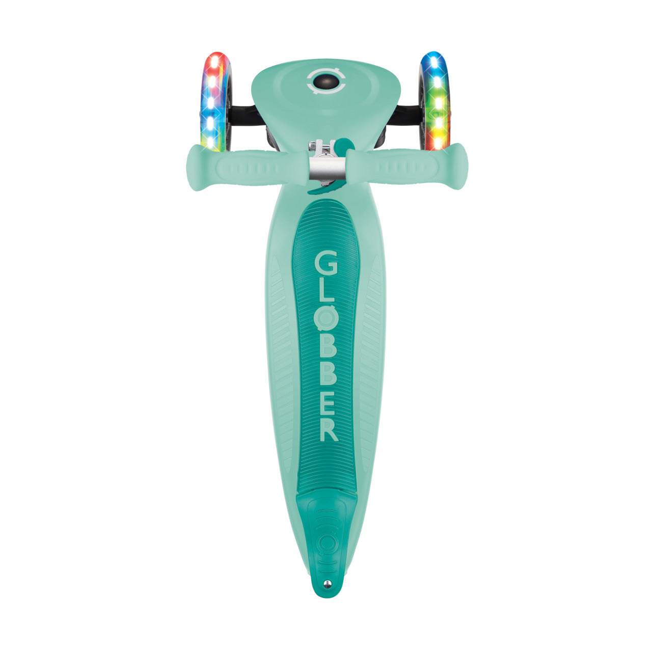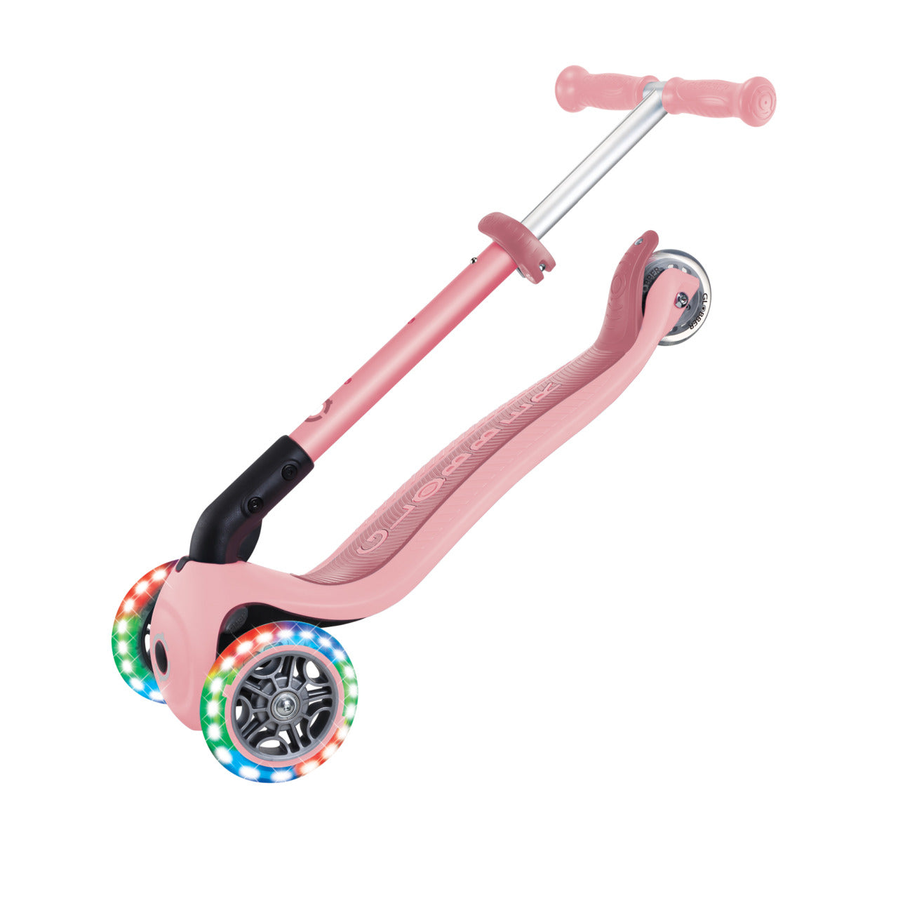 Equipped with a patented folding system, easily carry and compactly store your JUNIOR FOLDABLE LIGHTS! Plus, effortlessly fold this 3-wheel scooter into trolley mode for you or your toddler to roll home after a fun scooting day.