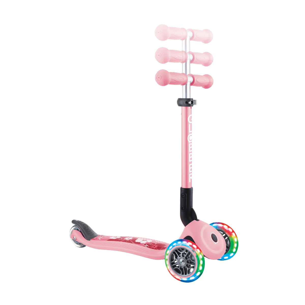 3-height adjustable T-bar on JUNIOR FOLDABLE LIGHTS 3-wheel toddler scooter