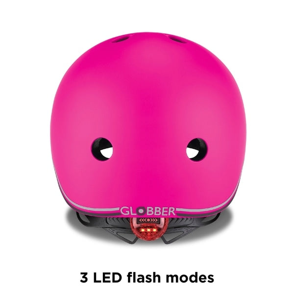 Globber Toddler GO•UP Lights Helmet delivers a comfortable & safe fit for young riders. New helmet design for toddlers provides excellent ventilation thanks to its 11 air vents cooling system. An extra-safe helmet choice with EPS impact-absorbing foam liner and a LED light at the back of the kid's helmet for maximum visibility. Globber's helmet for toddlers is super easy to adjust the fit by using the adjustable knob at the back of the helmet.