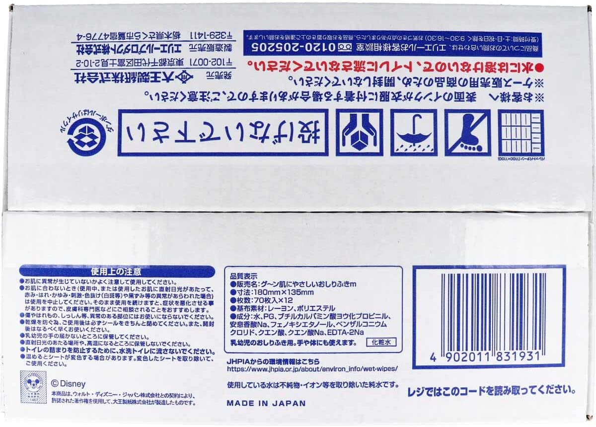 Goon Tsum Tsum Baby Wipes is a box of 12 Goon Baby Wipes that are made of 99% Pure Water. These sheets are gentle on the baby's delicate skin and safe to use from birth. These fluffy soft sheets are also gentle on the baby's skin and are thick enough to clean the baby's bums too. There are also great to bring on-the-go!
