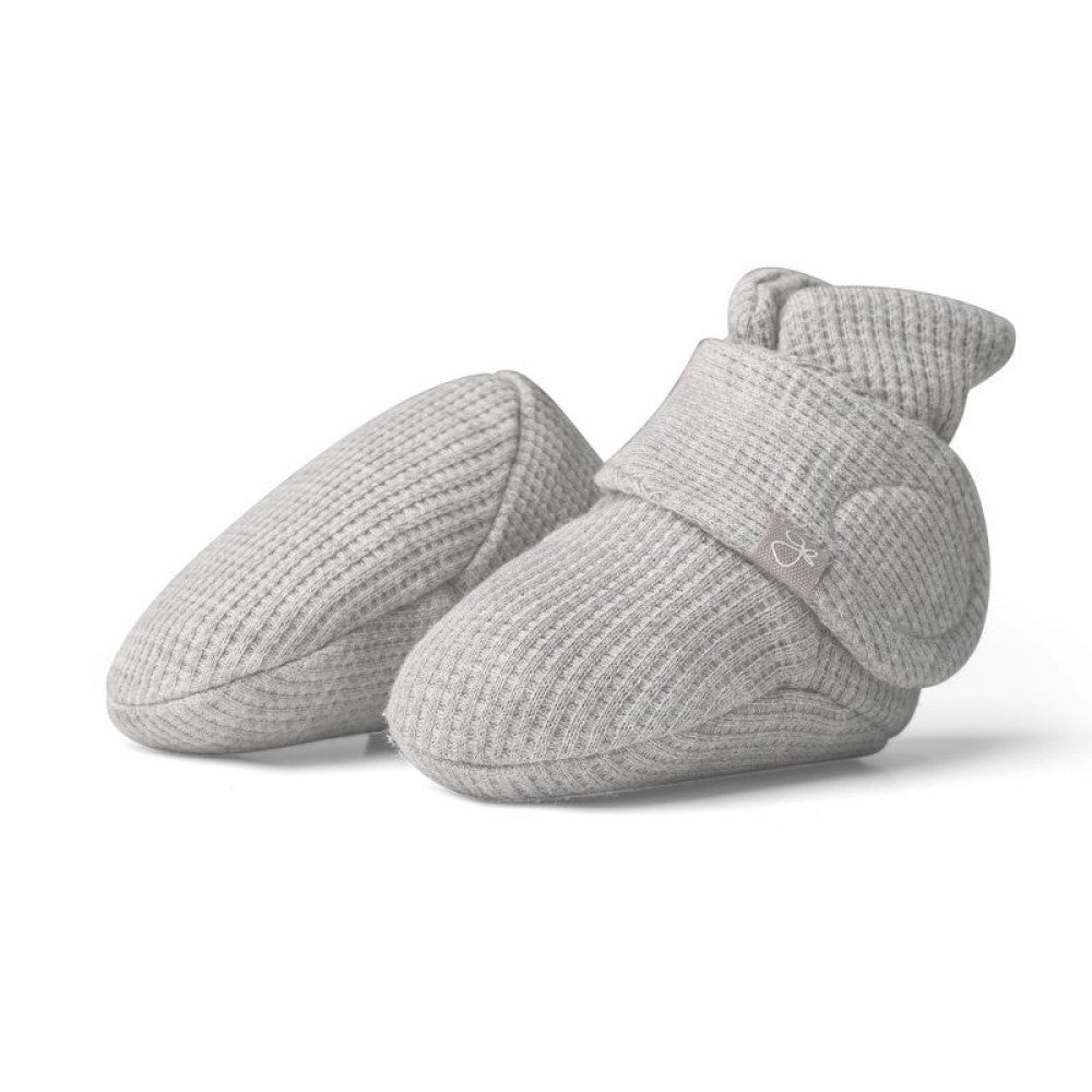 Goumiboots Bamboo & Organic Cotton Booties are a pair of booties made of bamboo viscose and organic cotton for babies. With the velcro and elastic two-part closure, it won't fall of baby's feet and can't be kicked off, too. The breathable material stays cool when warm and keeps warm when cool. The organic material is great for sensitive skin as well!