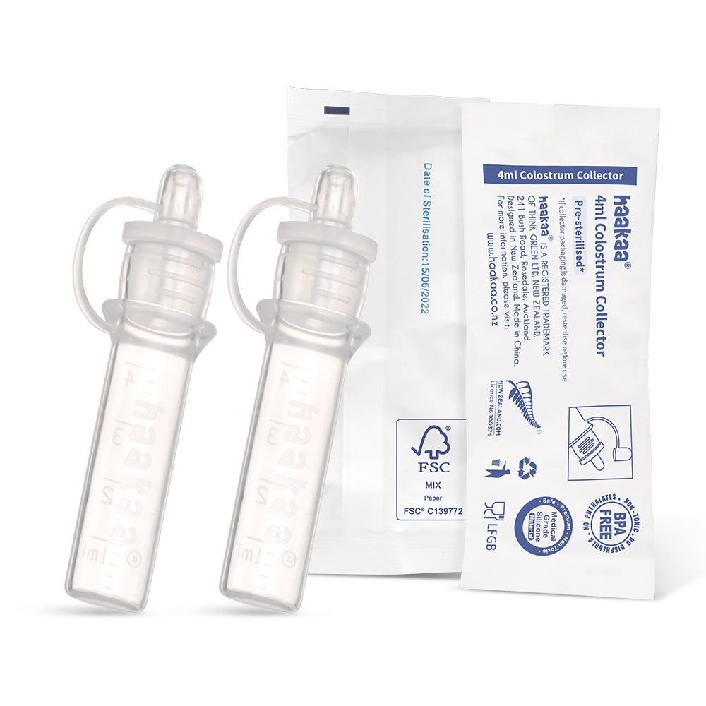 Haakaa Pre-Sterilized Silicone Colostrum Collector Set is a world-first design, giving mums the option to express colostrum antenatally and postnatally in a safe, easy-to-use storage solution. Colostrum is traditionally collected in single-use syringes often made from harmful plastics. Our Collector is made of 100% medical-grade silicone, which means it won't leach nasty toxins and can be safely stored in the fridge or freezer. It's easy to use and reuse, making it the ideal option for mums both before and after birth!