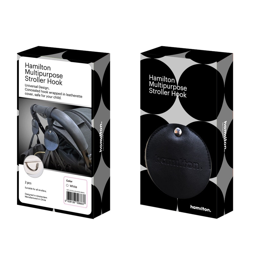 Hamilton Multipurpose Stroller Hook provides parents with a convenient and easy way to attach shopping bags, purses, toys and more to their stroller. It has a concealed hook that can be wrapped around the stroller's handlebar or frame, and a leatherette cover that is safe for children. The universal design fits most strollers.