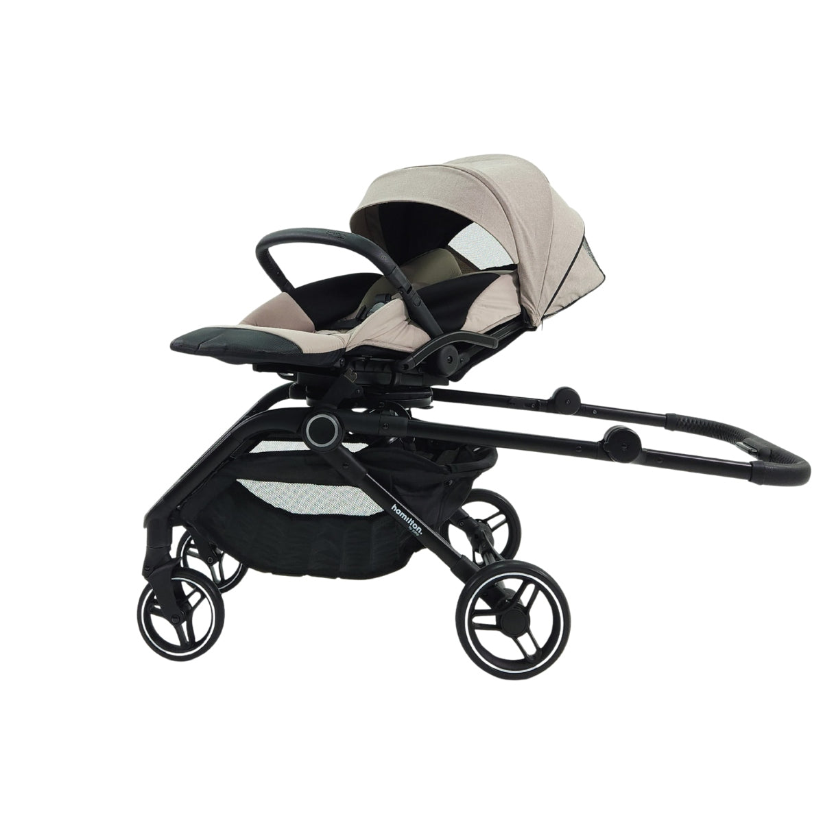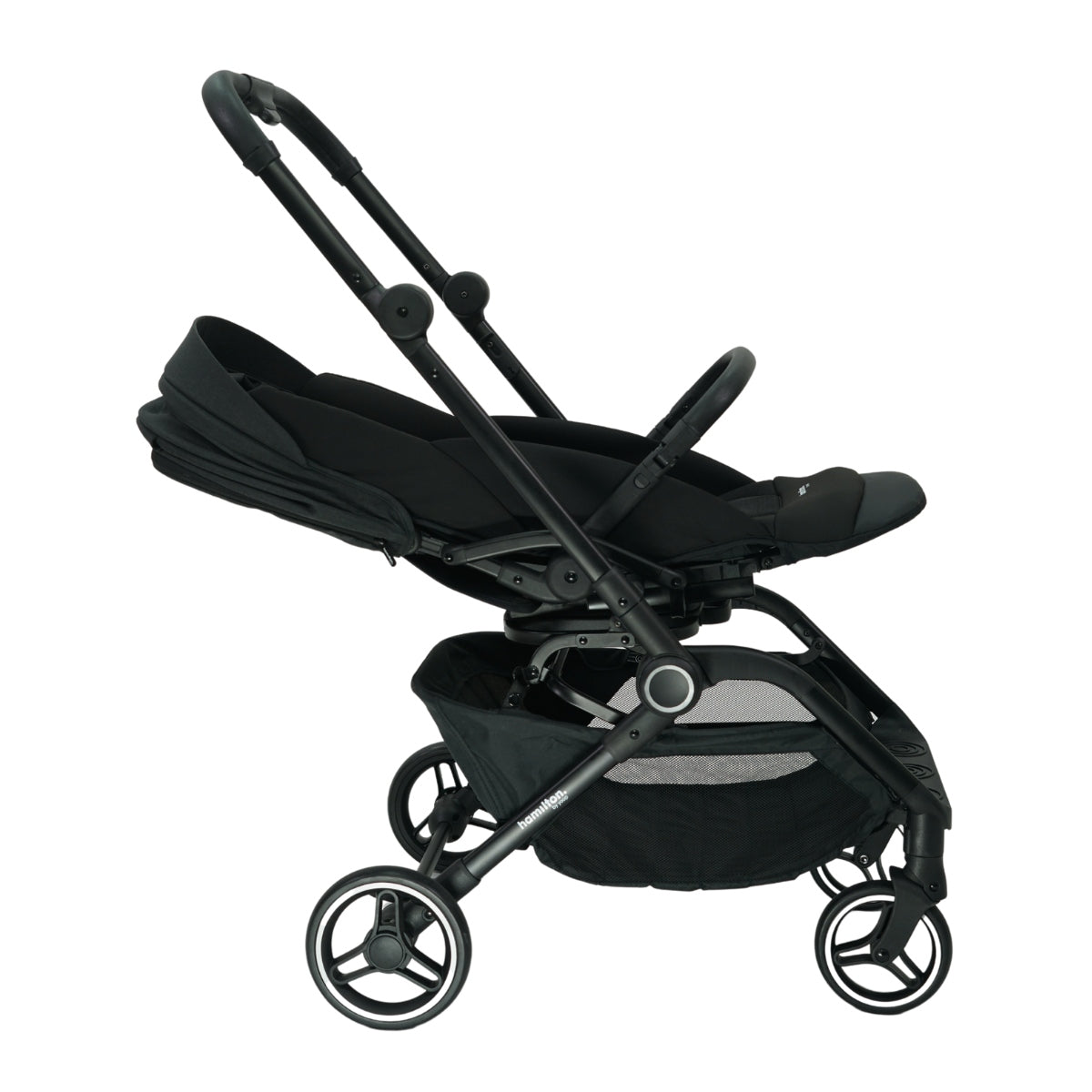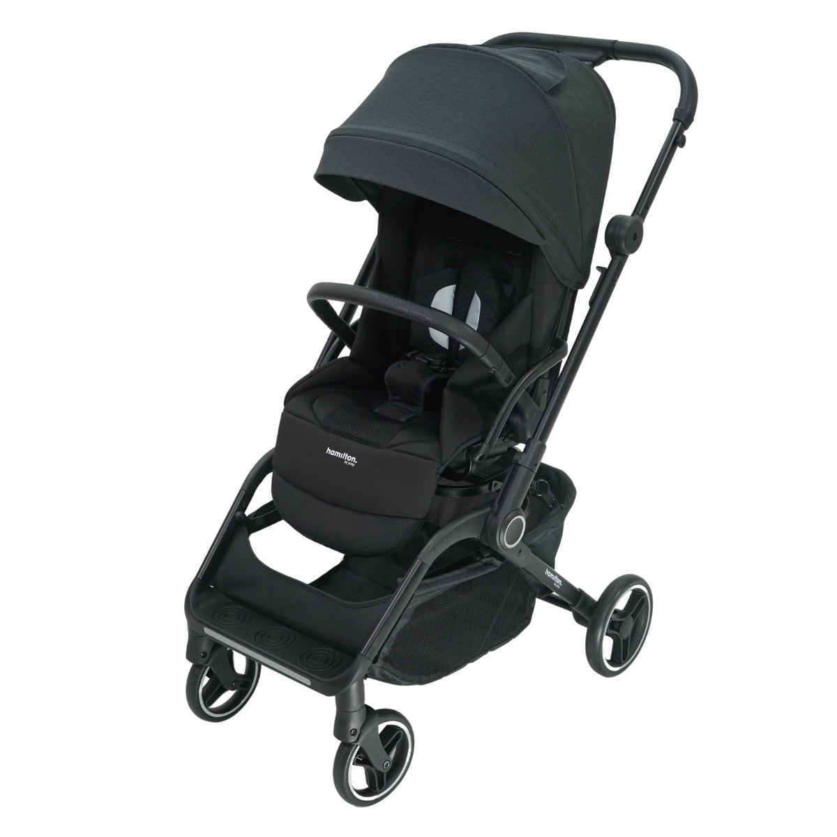 Hamilton T1 Turnable Stroller is a groundbreaking innovation in baby stroller range, Hamilton T1: the world's first stroller with a seat that can rotate a full 360 degrees while in a flat position. This revolutionary feature allows parents to effortlessly adjust their baby's view, facing them towards or away from the direction of travel with a simple spin of the seat. Whether it's exploring the bustling city streets or enjoying a leisurely stroll in the park, this stroller provides unparalleled flexibility and convenience for both parent and child. But that's not all! The T1 also boasts an ingenious MagicFold mechanism, allowing busy parents to collapse it with a single touch and unfold it with just one hand, making outings a breeze. The 1 is made up of top-quality aluminium frame which carry your baby safely from birth to 4 years old, approx. 22kg.