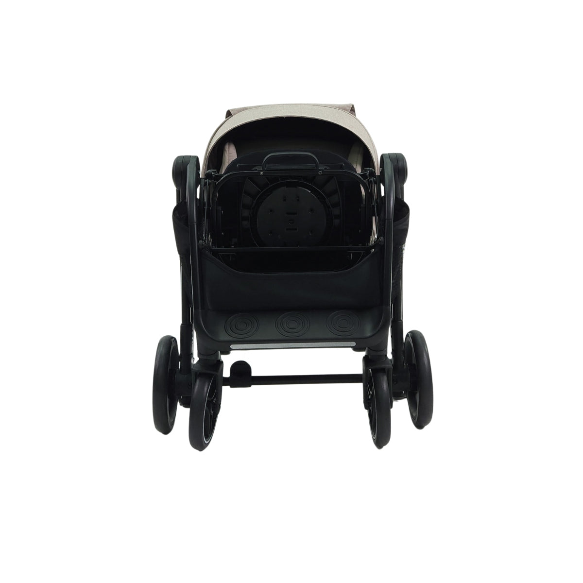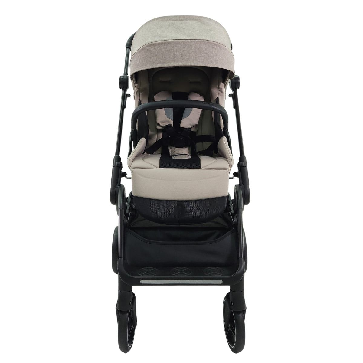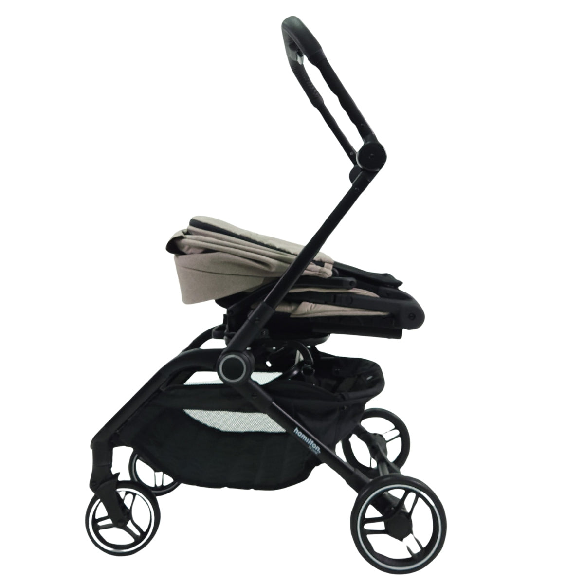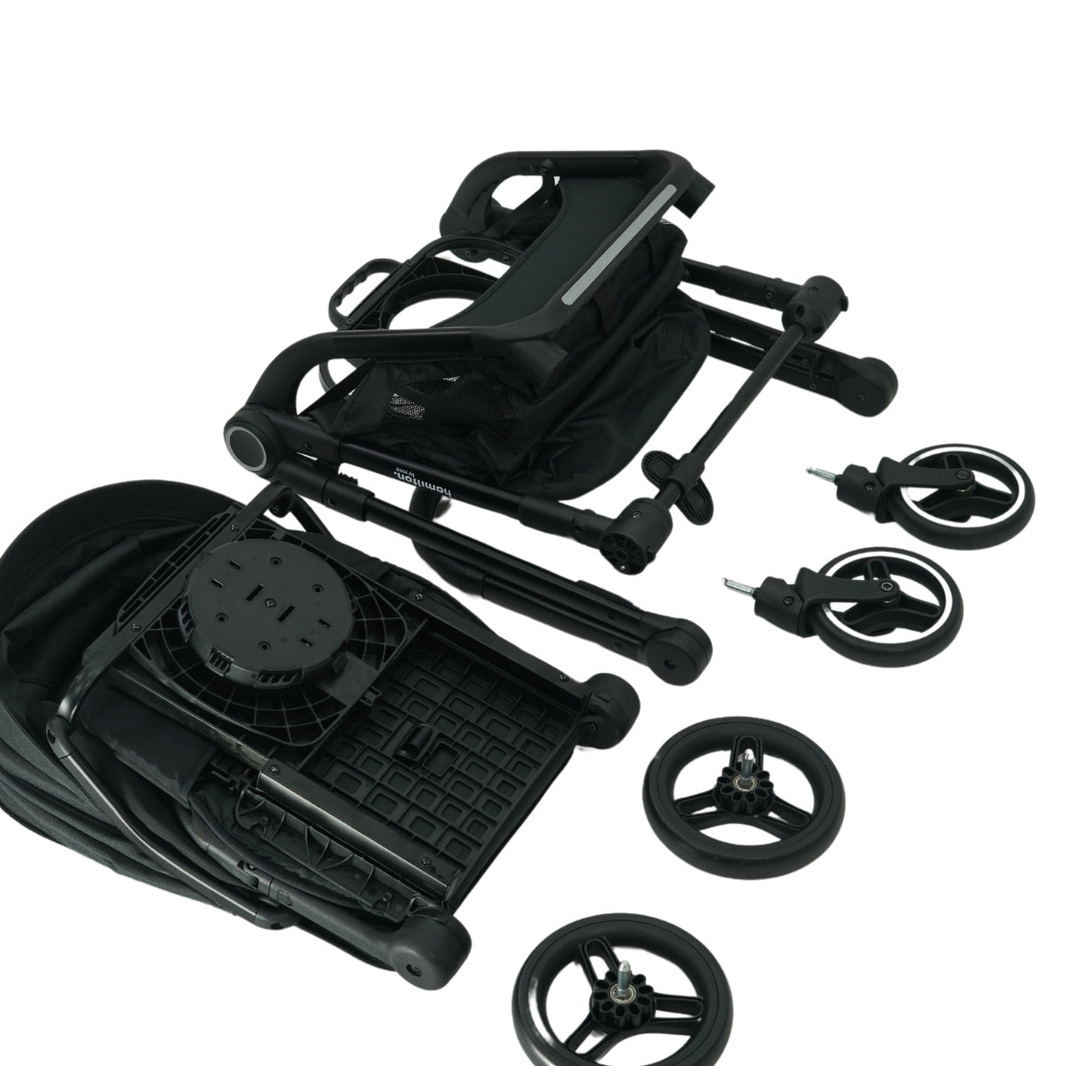 Hamilton T1 Turnable Stroller is a groundbreaking innovation in baby stroller range, Hamilton T1: the world's first stroller with a seat that can rotate a full 360 degrees while in a flat position. This revolutionary feature allows parents to effortlessly adjust their baby's view, facing them towards or away from the direction of travel with a simple spin of the seat. Whether it's exploring the bustling city streets or enjoying a leisurely stroll in the park, this stroller provides unparalleled flexibility and convenience for both parent and child. But that's not all! The T1 also boasts an ingenious MagicFold mechanism, allowing busy parents to collapse it with a single touch and unfold it with just one hand, making outings a breeze. The 1 is made up of top-quality aluminium frame which carry your baby safely from birth to 4 years old, approx. 22kg.