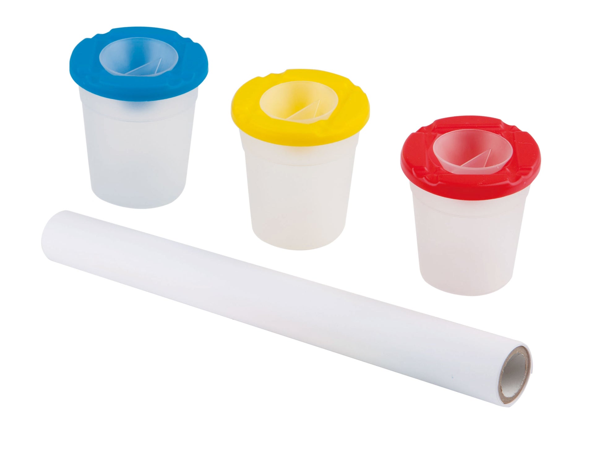 - Includes: easel, 3 paint pots and 1 replaceable paper roll. (paint not included)