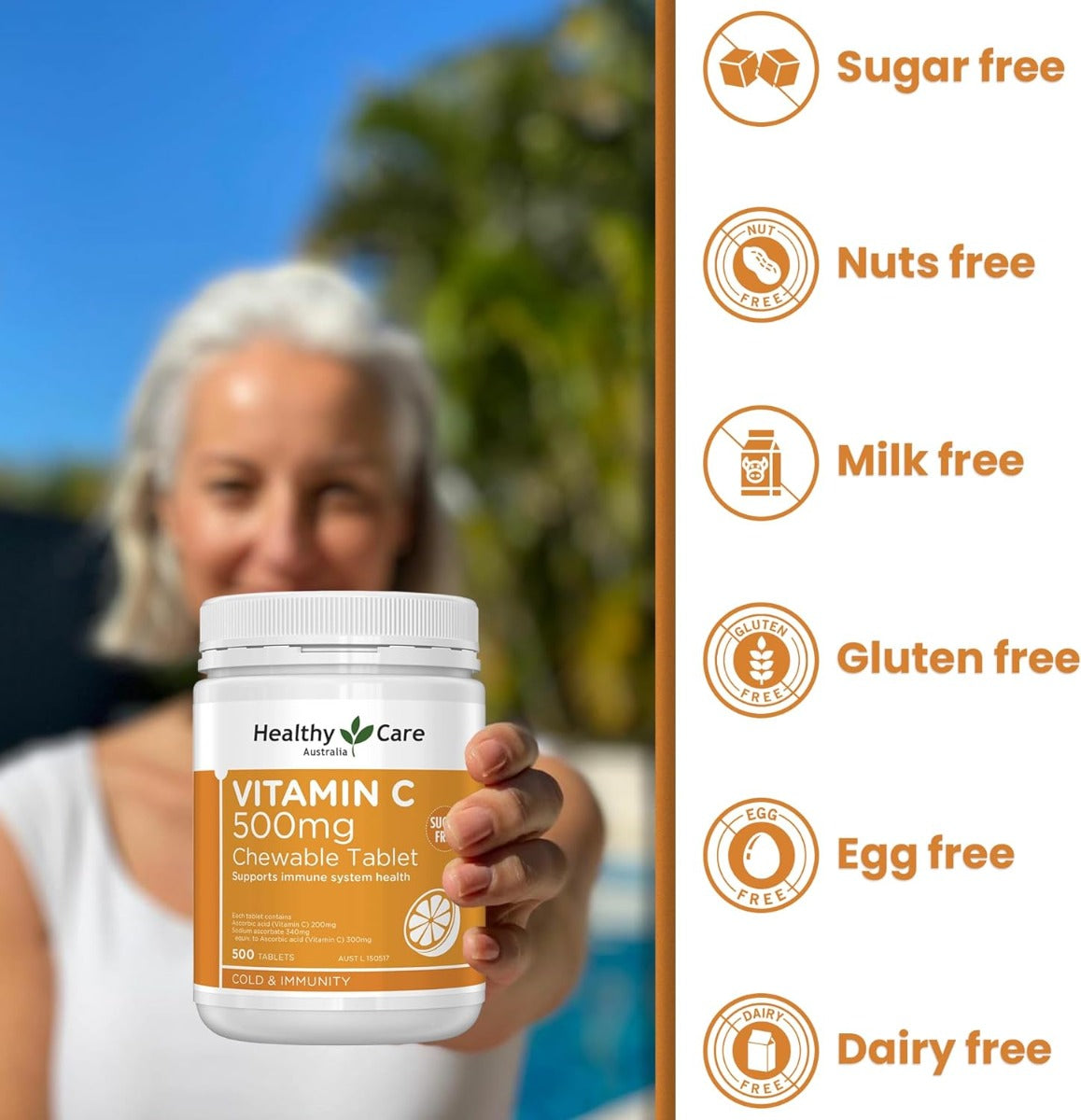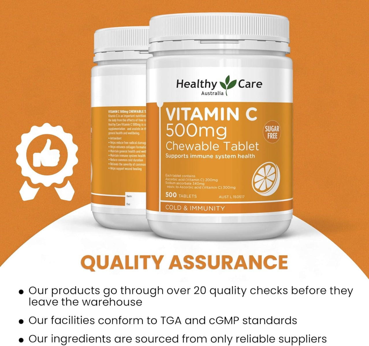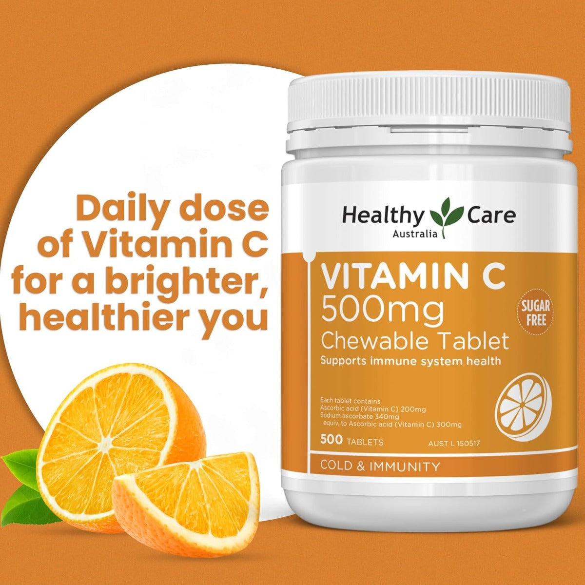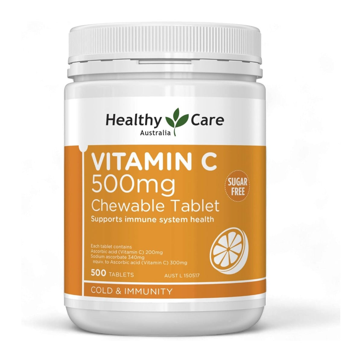 Healthy Care Vitamin C 500mg, 500 Chewable Tablets (Exp 07/27)