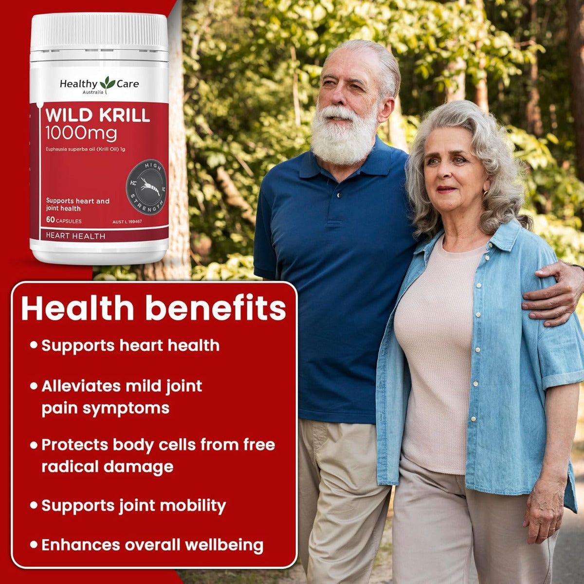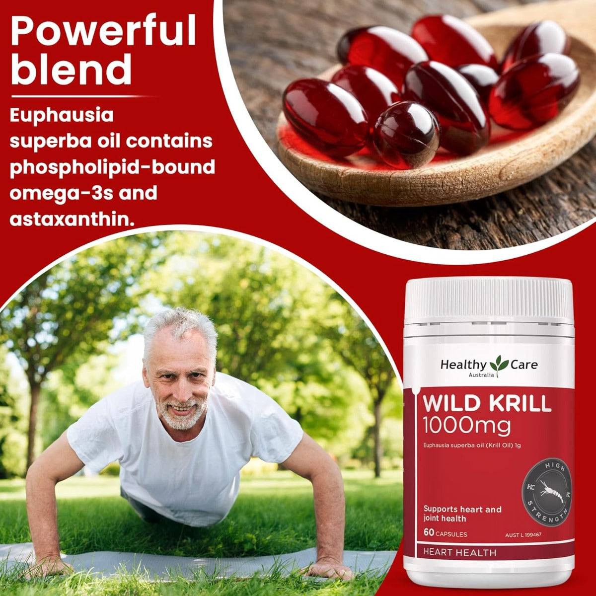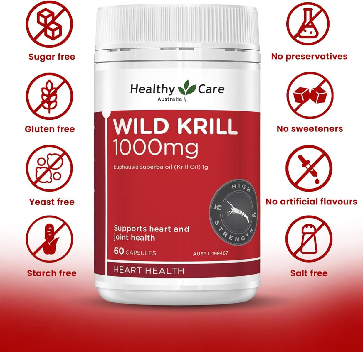Healthy Care Wild Krill 1000mg, 60 Caps (Exp 04/26)