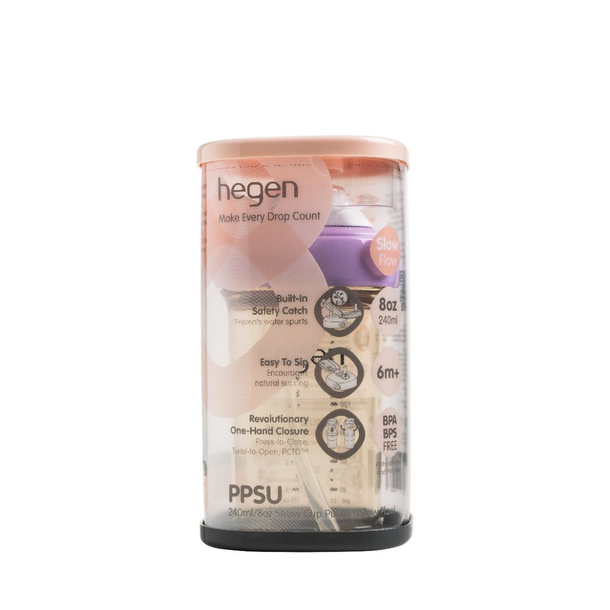 Hegen PCTO™ Straw Cup PPSU, 240ml/8oz (Slow Flow) is designed without a bite valve, our straw allows little ones to sip with ease, encourages good dental health and guides them to master the technique of sipping. Learning to sip from a straw has never been this easy. First of its kind in Singapore, our straw cup's unique click-to-lock safety cap prevents liquid from spurting and holds the cap in place so your child can drink easily. The slow flow straw cup is perfect for children aged 6 months and up, aiding them in their transition from feeding bottle to straw cup.