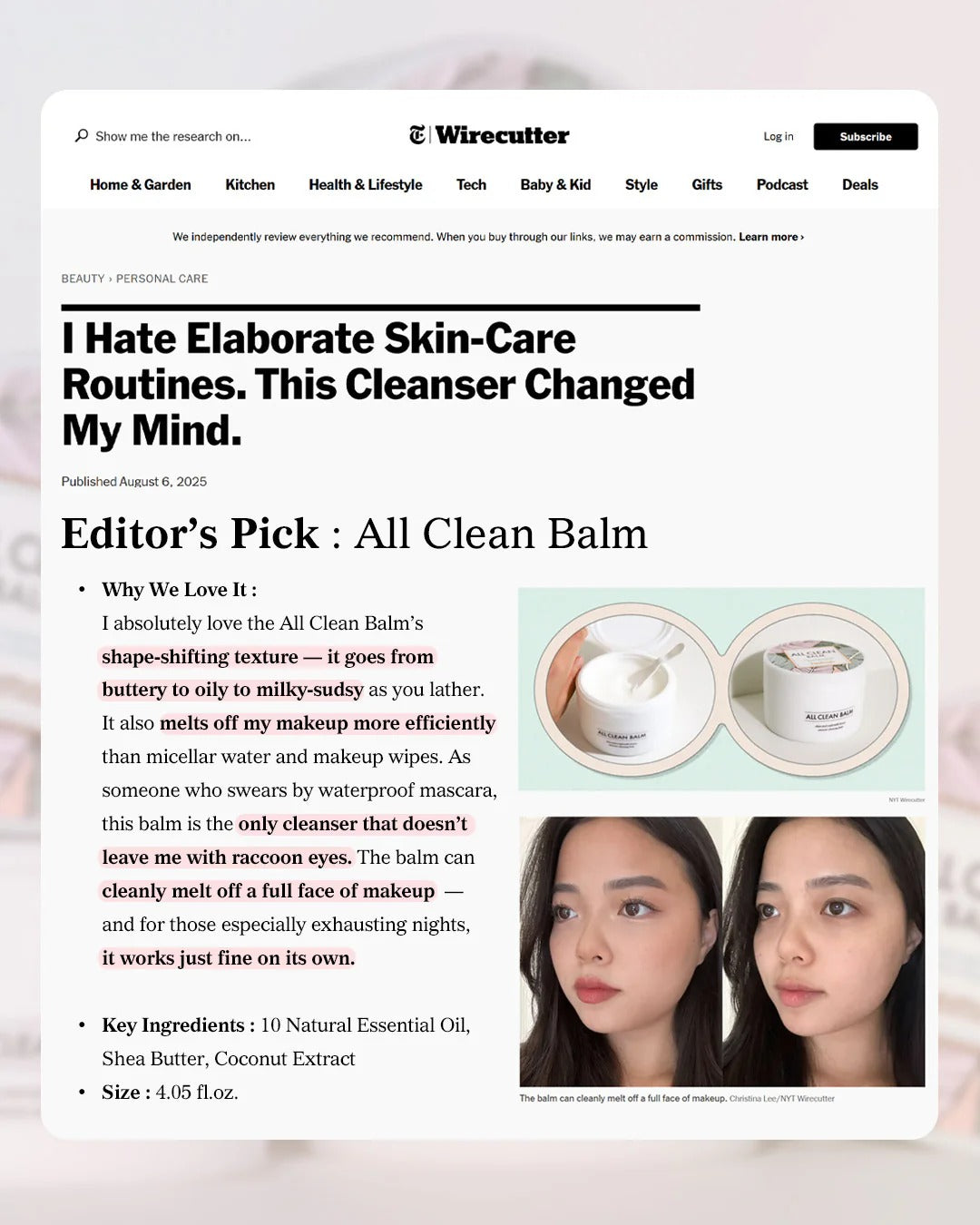 Heimish All Clean Balm is a Balm-Oil-Milk transforming cleansing balm with revolutionary formula that easily and quickly removes stubborn waterproof makeup, dirt, and impurities, transforming from a silky balm into a luxurious cleansing oil and then a hydrating milk. It’s the perfect all-in-one makeup remover for a gentle yet thorough cleanse.