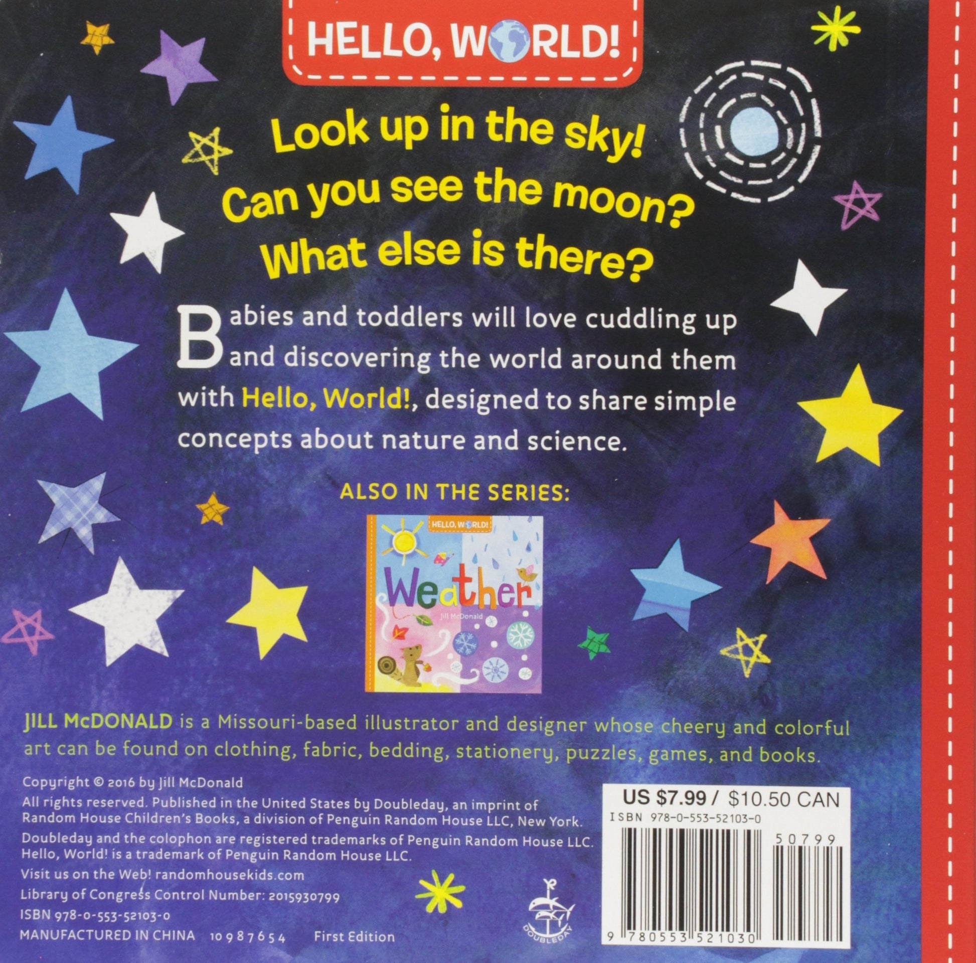 Hello, World! Solar System Board Book is a designed to introduce simple Solar System concepts to babies and toddlers. Told in clear and easy terms and featuring bright, cheerful illustrations, Hello, World! makes learning fun and easy for young children. And each sturdy page offers helpful prompts for engaging with your child. (“Can you point to the red planet? That’s Mars!”)