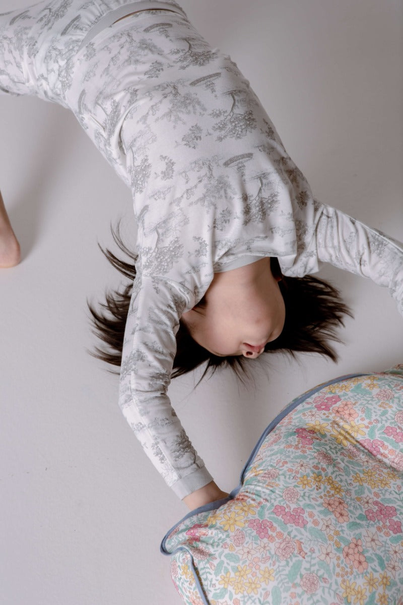 House of Holly Long Sleeve Tshirt & Pants Pyjamas Set - Garden Toile Silver (4 Sizes)