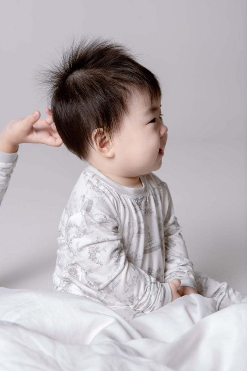 House of Holly Long Sleeve Tshirt & Pants Pyjamas Set is a set containing bamboo long-sleeve pyjamas t-shirt and a pants. Indulge your little ones in the perfect blend of comfort and style. Crafted from luxurious bamboo fabric, this set will keep your child cool and comfortable, making it ideal for tropical weather. The perfect elevated sleepwear set for lounging at home all day. Prepare for a sensational experience with its crew neck long-sleeve T-shirt and matching bottoms, expertly crafted from our premium four-way stretch bamboo fabric. Bask in the ultimate comfort, whether your little one is lazing at home or gallivanting outdoors in tropical weather. Every detail caters to your childβs delicate and sensitive skinβthese pyjamas are buttery soft, feather-light, and wonderfully breathable. The sumptuous texture of the bamboo fabric will turn this set into their cherished all-day and all-night ensemble.Β