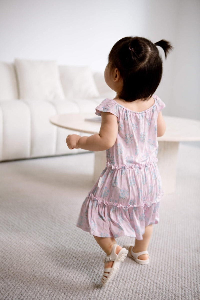 House of Holly Tiered Dress Romper - Victorian (Blue Posies) in Pink (3 Sizes)