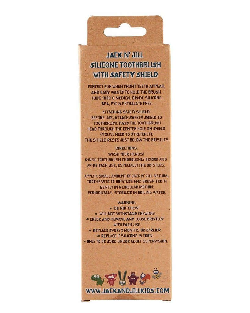 - Apply a small amount of Jack N' Jill Natural Toothpaste to bristles and brush teeth with a gentle, circular motion.