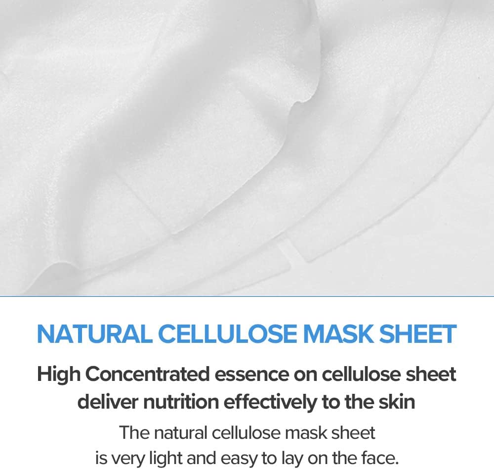 - The ultra-light natural cellulose mask sheet adheres perfectly to skin.