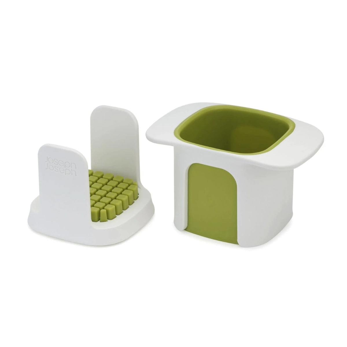 Joseph Joseph ChopCup Vegetable Chopper is a clever, compact vegetable chopper perfect for quickly chopping onions or making chips or sticks from potatoes, carrots and courgettes. Perfect for chopping onions and making chips or sticks from potatoes, carrots and courgettes. Sharp, stainless-steel blades. Collects chopped pieces as it cuts, fast and easy to use. Dismantles for easy cleaning.