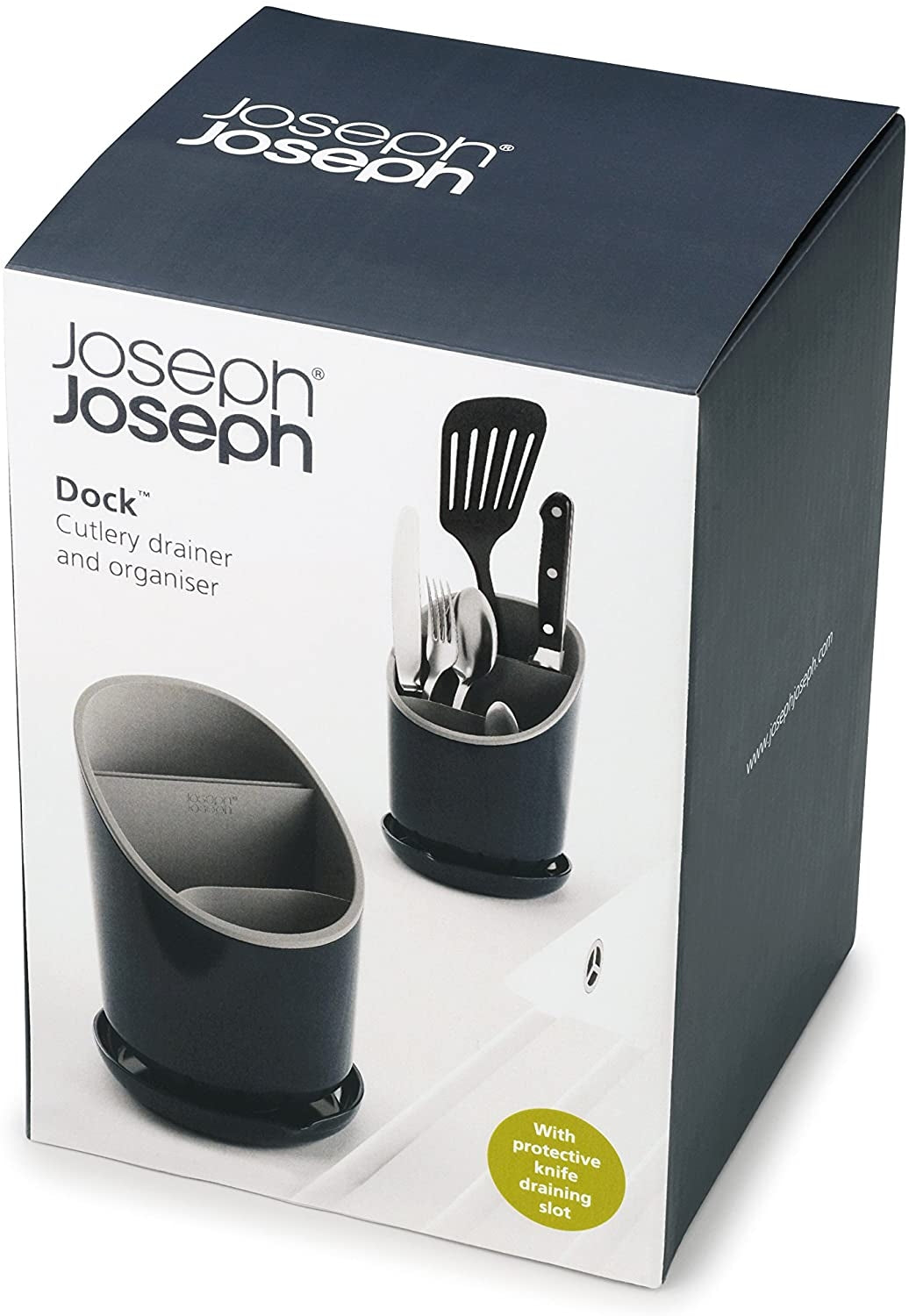 Joseph Joseph Dock Cutlery Drainer is a handy cutlery drainer with tiered compartments to help you separate out different items and an integrated saucer to collect any excess water. A cutlery drainer is an essential sink-side item, however they can sometimes be difficult to clean and don’t always provide adequate separation for cutlery and sharp knives. Dock, however, has been designed with both safety and hygiene in mind. The tiered compartments help you to easily separate different items and the dedicated knife slot keeps sharp blades safe and secure.