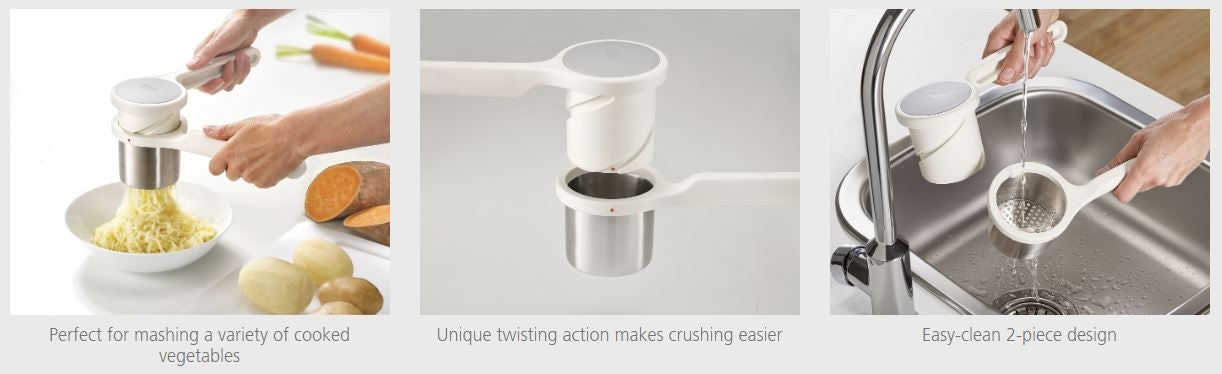 - Unique twisting action makes ricing potato easier