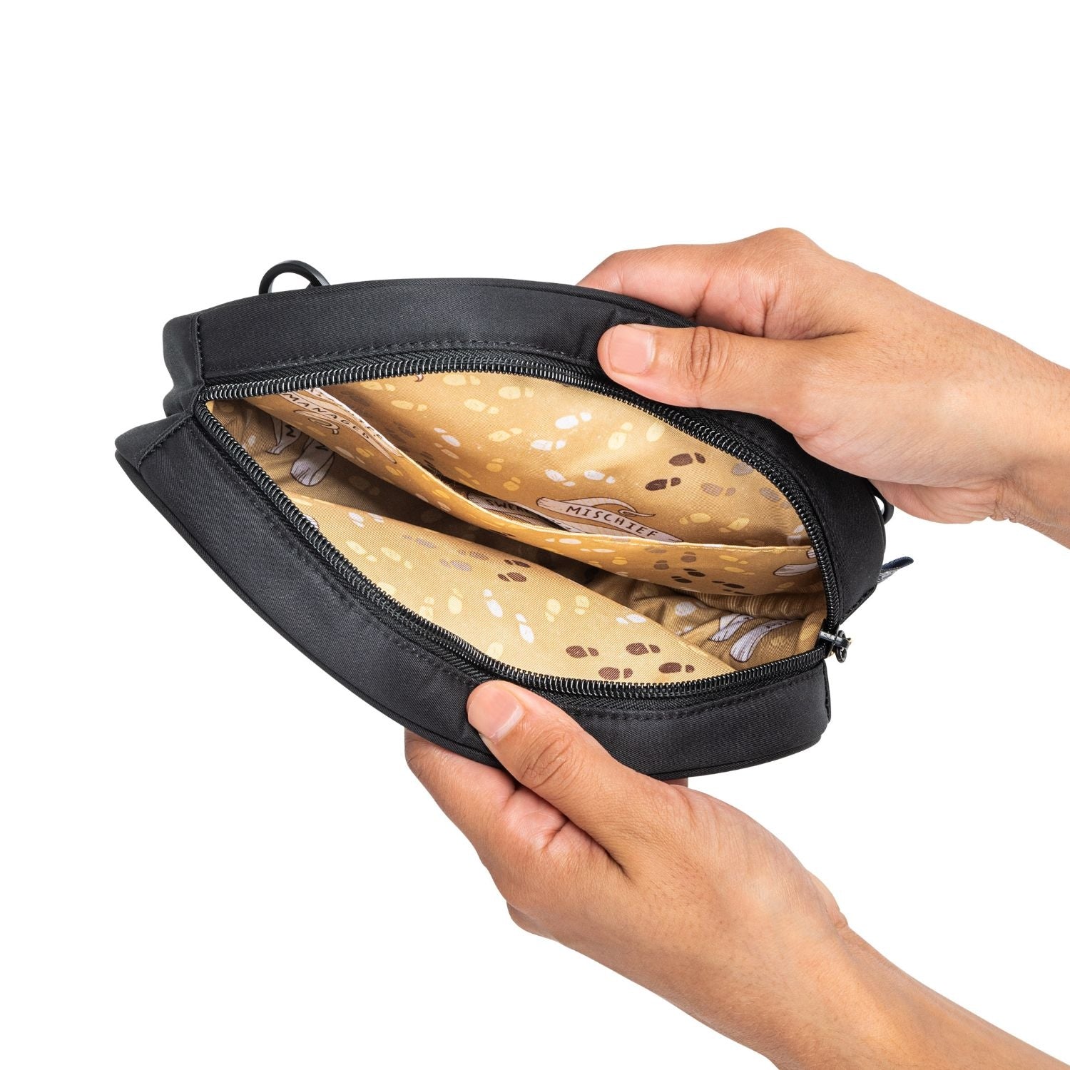 Jujube Freedom Harry Potter Fanny Pack is a fanny pack that can be a pouch strapped around your waist or mini crossbody bag to sling over your shoulder. The rounded shape offers a stylish design to adorn your waist. It acts as a mommy pocket for you to put your keys, phone, wallet, tissues and more! It has metal D-ring hoops at the back of the bag for you to attach the strap (included) so as to wear the bag as a waist pouch or crossbody.