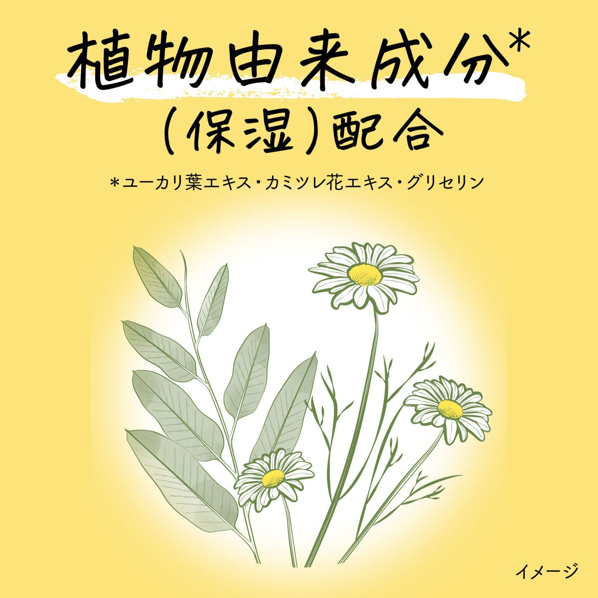 - Contains plant-derived ingredients (moisturizing): eucalyptus leaf extract, chamomile flower extract, glycerin